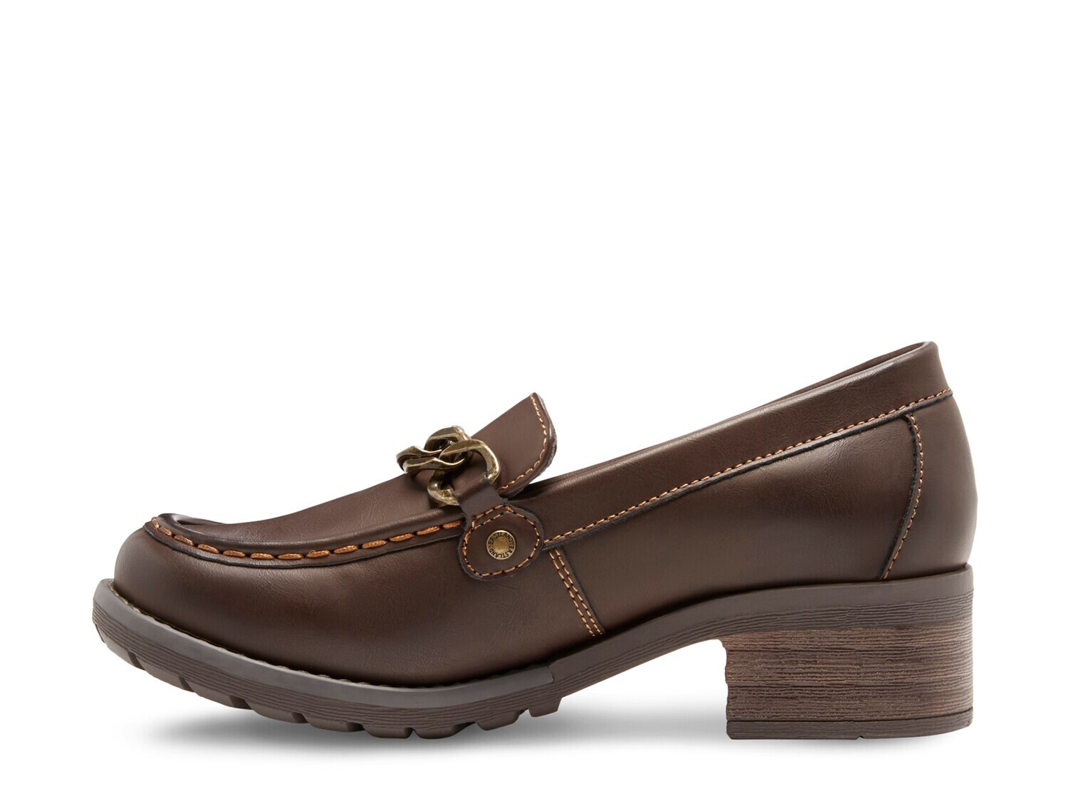 Лоферы Nora от Eastland придадут классический вид любому наряду. Эти слипоны украшены звеньями цепочки и наборным блочным каблуком, придающим нотку остроты.