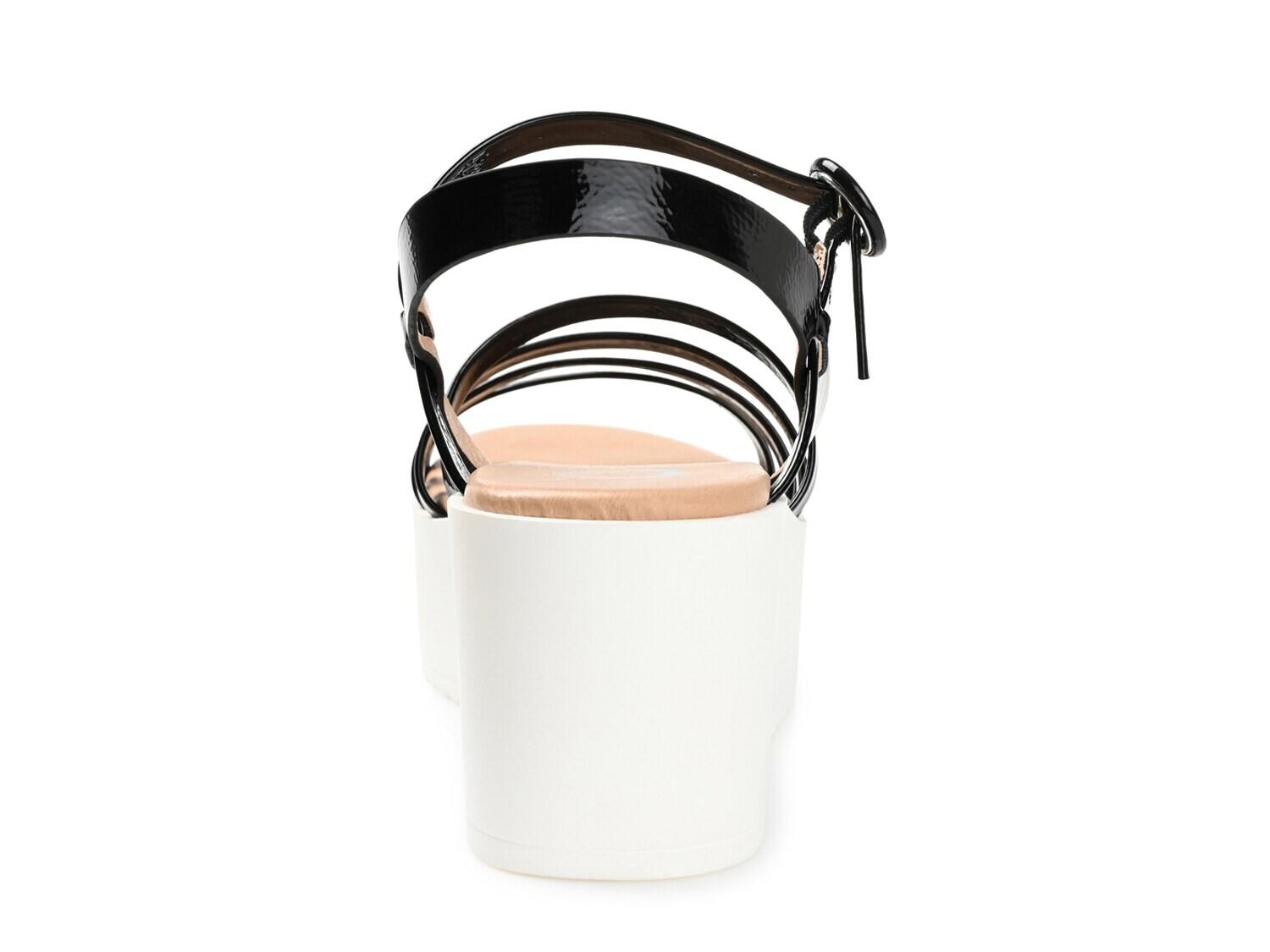 Улучшите свой базовый образ в теплую погоду с помощью сандалий на платформе Mirage из коллекции Journee. Эти босоножки на танкетке построены на белой платформе, которая контрастирует с верхом с ремешками из запатентованной веганской синтетики.