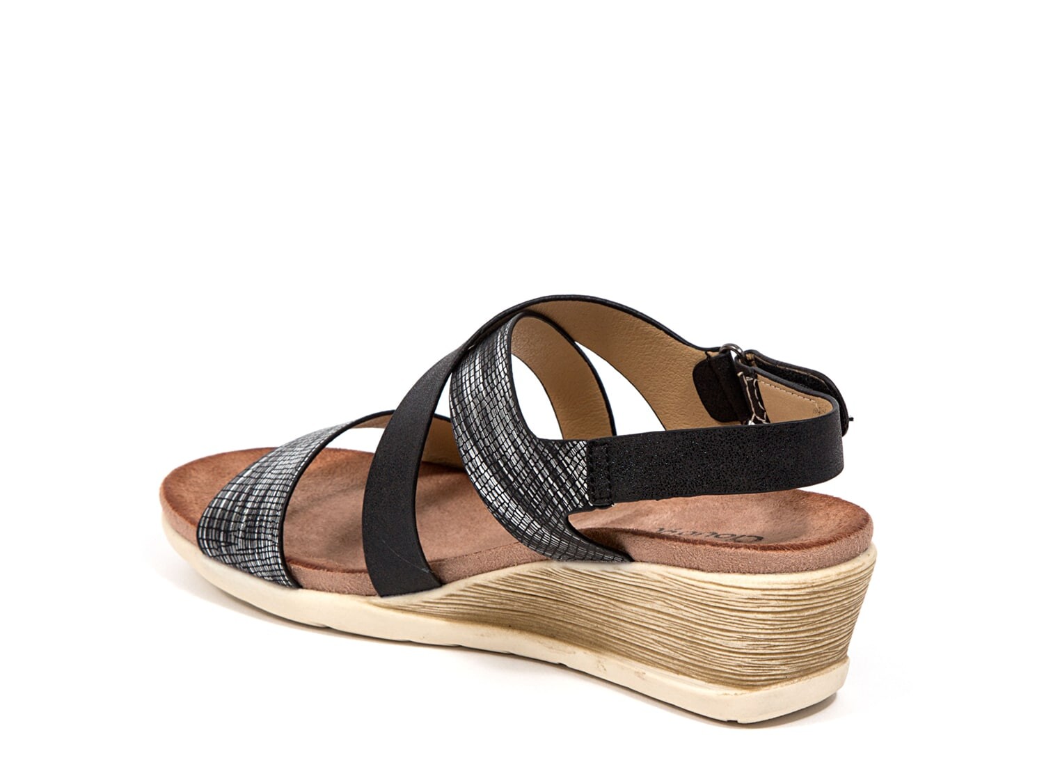 Сандалии Ninety Union на танкетке, цвет Black/Silver Crackle