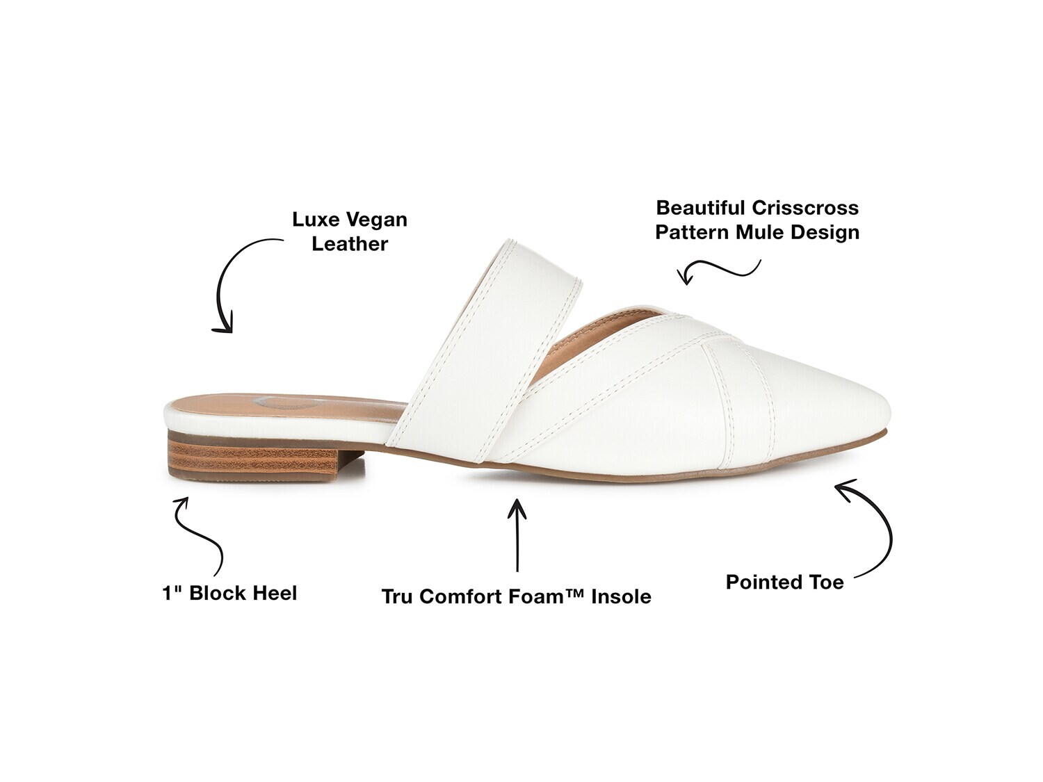 Оставайтесь элегантными и минималистичными одновременно в платье-мюле Stasi от Journee Collection. Эти мюли с острым носком идеально подходят для повседневного ношения. Они оснащены красивыми ремешками крест-накрест и стелькой Comfort Foam толщиной 4 мм, обеспечивающей длительный комфорт.