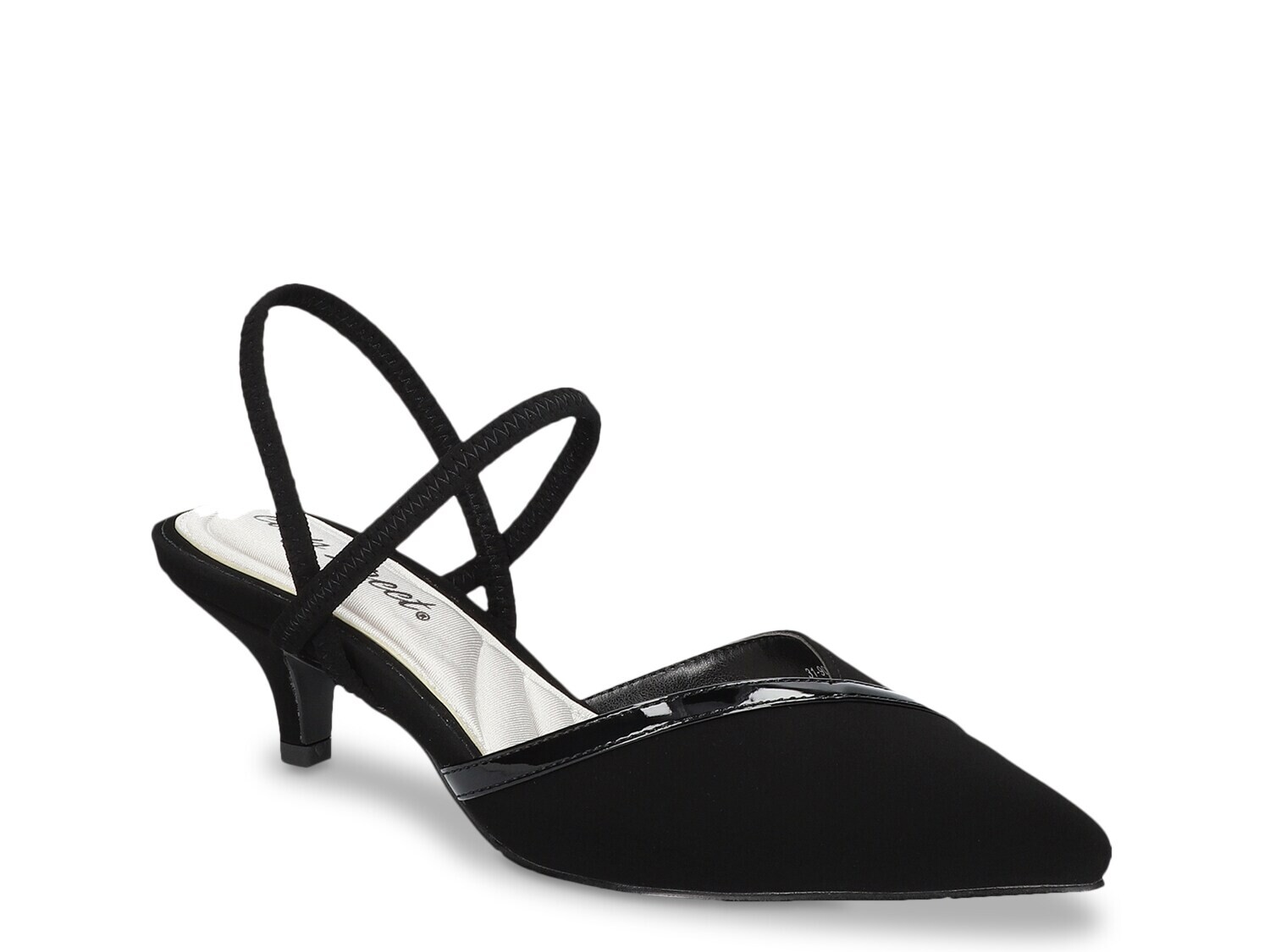 Обтянутый каблук «котенок» высотой 1,75 дюйма.