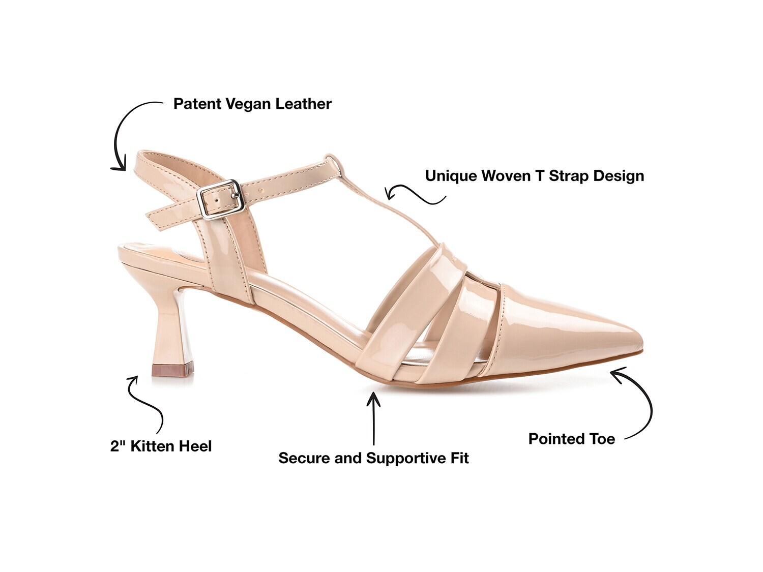 Ретро-мода никогда не выходит из моды, когда рядом находятся туфли-лодочки Jazlynn от Journee Collection. Лакированный верх придает блеск этим регулируемым туфлям, дополненным мягкой стелькой для нежной амортизации. Симпатичный каблук «кошка» обеспечивает легкий подъем.