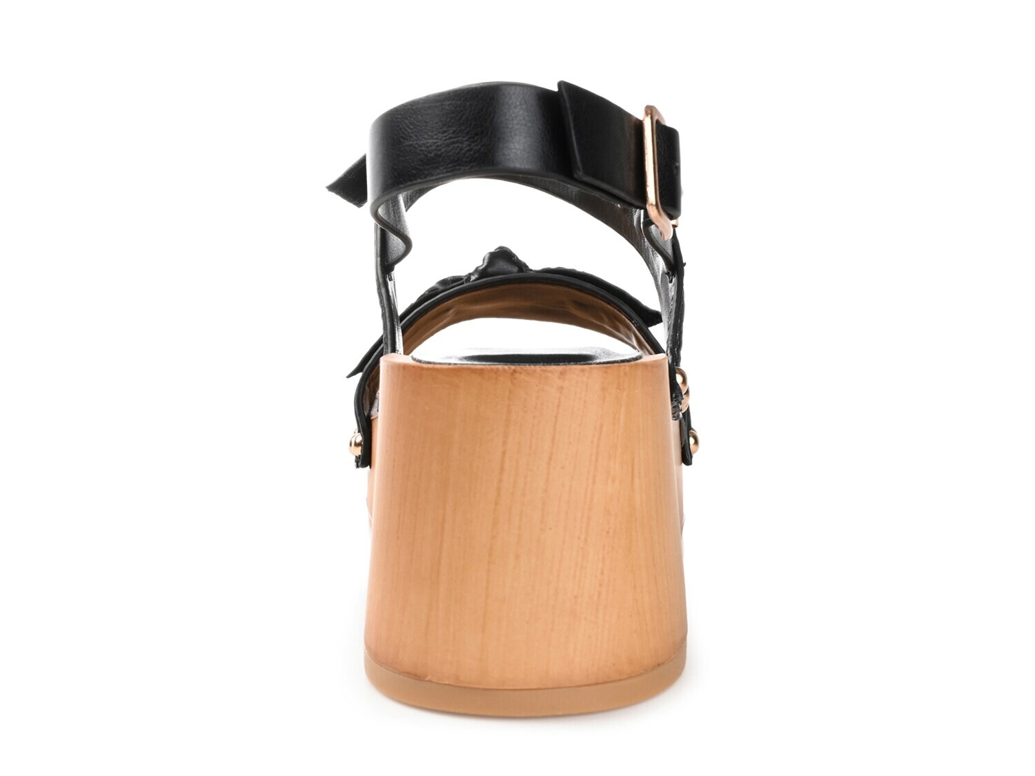 Изысканность обретает новую форму в сандалиях Tia от Journee Collection. Заклепки и пряжка создают металлический эффект на этих босоножках на блочном каблуке с вишневыми деталями и двумя милыми бантиками.