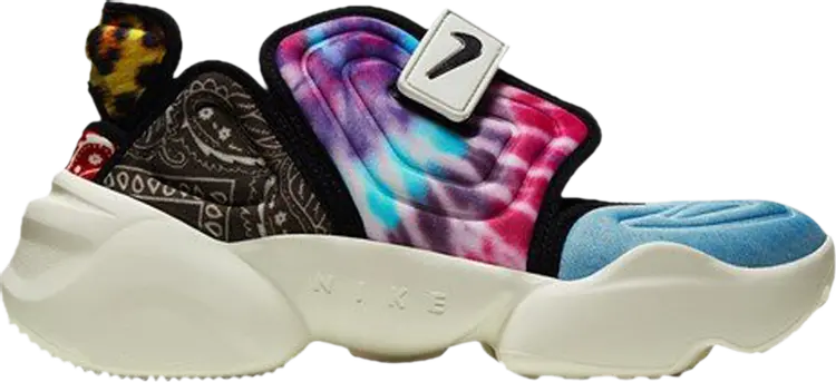 Wmns Aqua Rift «Multi Print» имеет яркий внешний вид. Каждая вставка из неопрена имеет свой принт, а верх поддерживается ремешком на липучке. Гибрид кроссовок и сандалий поддерживается конструкцией с разделенным носком, которая продолжается до нижней части обуви.