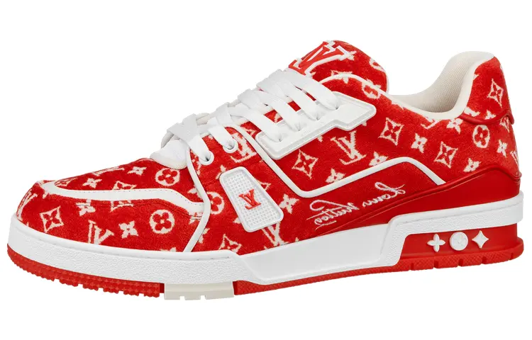 Кроссовки Louis Vuitton, красный текстиль с монограммой