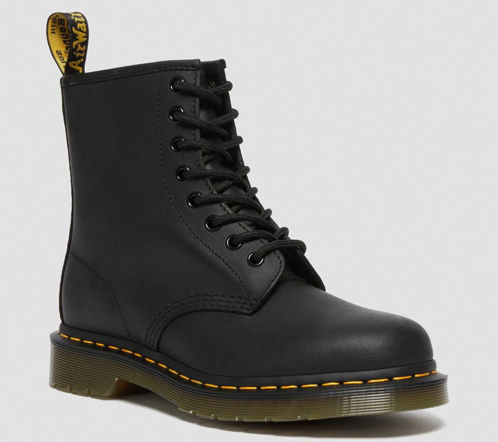 Классический силуэт Dr. Martens. 8-дырочные ботинки 1460 Greasy — это прежде всего знаменитая кожа: матово-чёрная, с вощёной, маслянистой текстурой. Они созданы на базе массивной, но элегантной подошвы, сочетая в себе премиальный комфорт и сдержанный стиль.