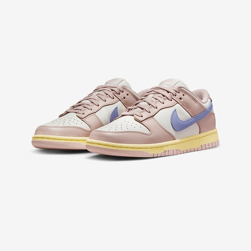 Женские кроссовки Nike Dunk Low «Pink Oxford» выполнены в насыщенных пастельных тонах. Низкопрофильный силуэт выполнен из гладкой кожи, имеет бледно-серую основу с нежно-розовыми накладками и фирменным логотипом Swoosh в цвете Light Thistle. Низкий мягкий воротник в сочетании с дышащим нейлоновым язычком обеспечивают удобную посадку. Кроссовки опираются на резиновую промежуточную подошву цвета Lemon Wash - желтого оттенка, повторяющего вид состаренных и окисленных боковин.