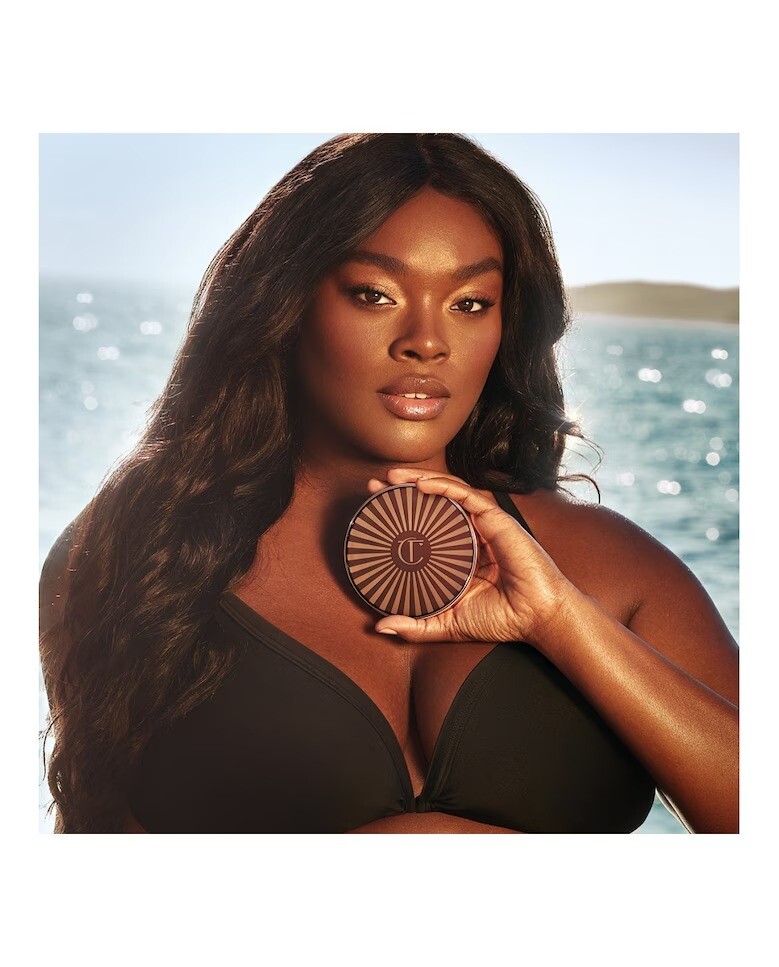 Обогащенный гиалуроновой кислотой и солнечным провитамином D3, этот кремовый бронзер - секрет мгновенного загара на каждый день и великолепного, здорового, солнечного сияния, как будто вы только что пришли с пляжа. Бронзер выпускается в палитре очень приятных оттенков и обеспечивает идеальное летнее сияние. Устойчивая к поту и влаге формула имеет пудрово-кремовый финиш, который сливается с кожей. Благодаря этому можно легко добиться растушевки от мягкого до интенсивного оттенка, что позволяет создать как естественный, так и более четкий контурный образ.