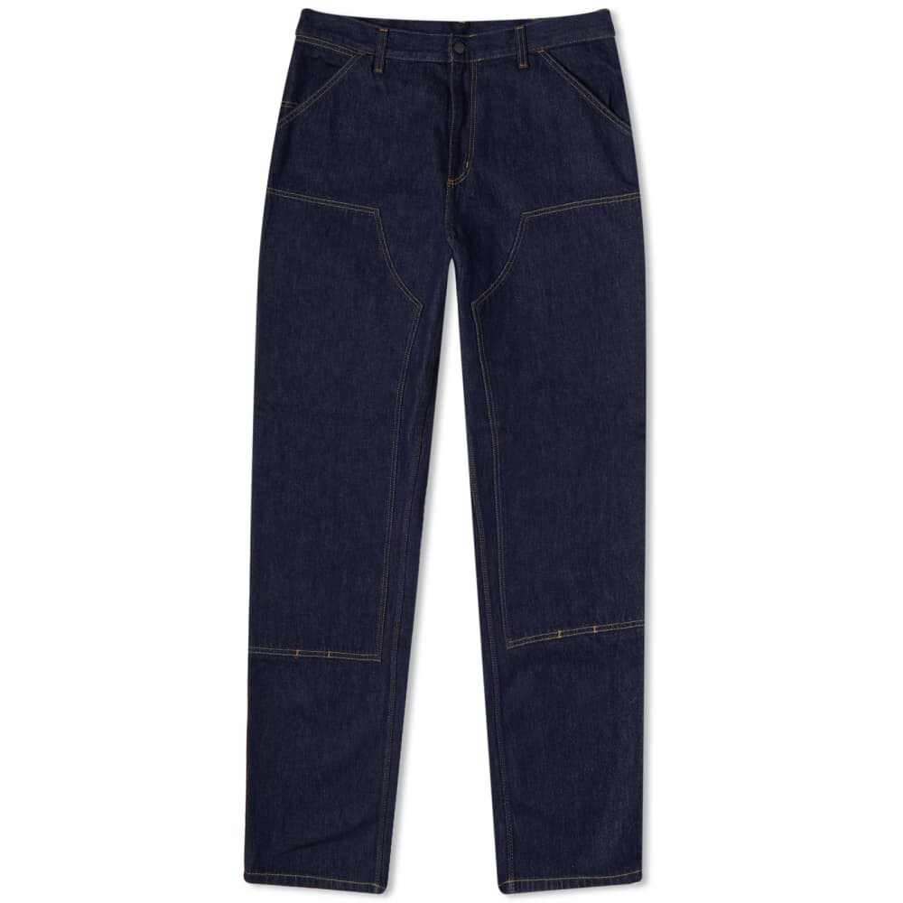В соответствии с непреходящим наследием прочной рабочей одежды Carhartt WIP, джинсовые брюки с двойным коленом сочетают в себе прочность и стиль. Эти свободные брюки прямого кроя, изготовленные из джинсовой ткани Smith, имеют двухслойное усиление на коленях и закрепочную строчку, что отражает приверженность Carhartt WIP прочному дизайну и влиянию утилитарного стиля.