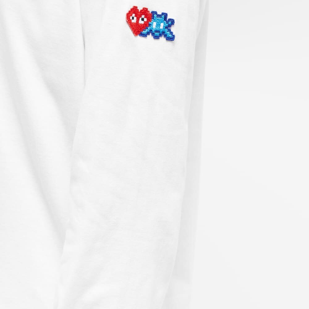 Последняя коллекция Comme des Garçons вдохновлена аркадной игрой Space Invaders 70-х годов. Эта футболка, возвращающая ностальгические ощущения от пребывания в игровых автоматах в детстве, идеально подходит для ношения круглый год. На груди изображено знаковое выглядывающее сердечко бренда, создающее пиксельный эффект этого сезона.