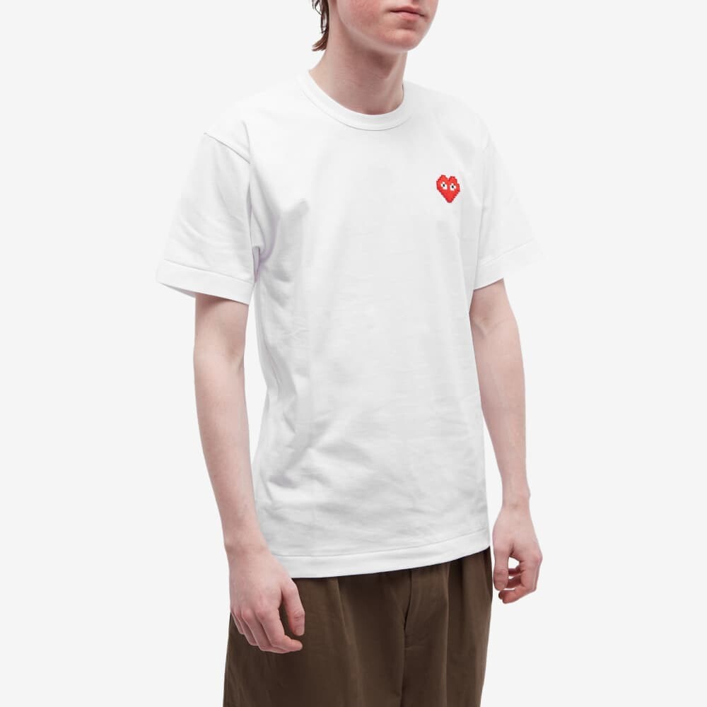 Британский бренд Comme des Garçons Play, благодаря своему культовому дизайну в виде выглядывающего сердечка, так же известен, как и оригинальный лейбл. Comme des Garçons Play представляет Invader в своей коллекции весна-лето 23. Этот маленький человечек, изображенный спереди на белой футболке, станет простым способом улучшить ваш повседневный образ.