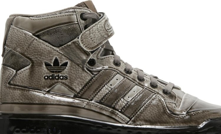 Кроссовки Jeremy Scott x adidas Forum High Dipped «Carbon» придают ретро-обувям 80-х уникальный вид, вдохновленный DIY. Американский дизайнер добавил ненасыщенную серую отделку к глянцевому кожаному верху, имитирующую вид обуви, окрашенной в черный цвет. Регулируемый ремешок на липучке фиксирует высокий воротник, подкладка из мягкой ткани обеспечивает удобную посадку. Они построены на полупрозрачной черной резиновой подошве.
