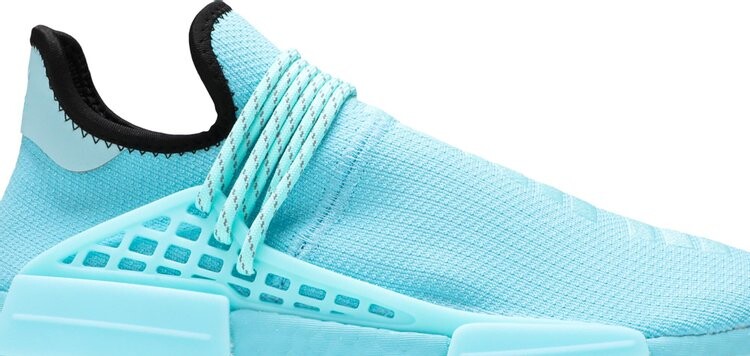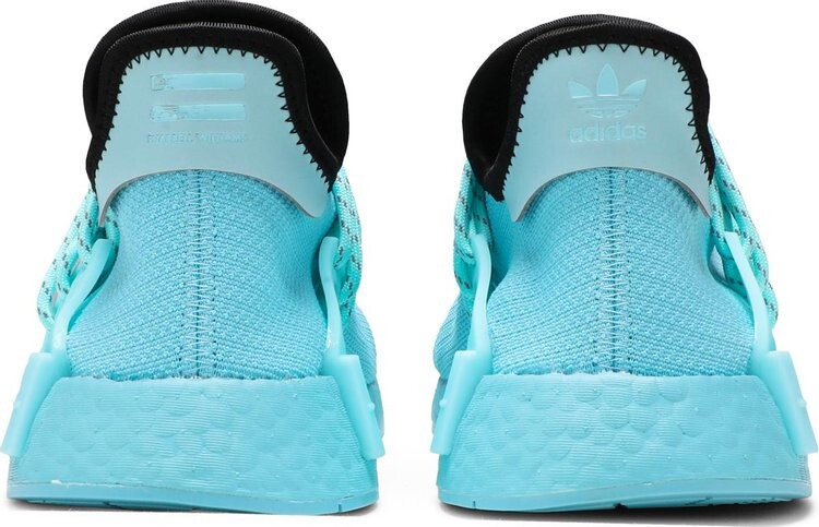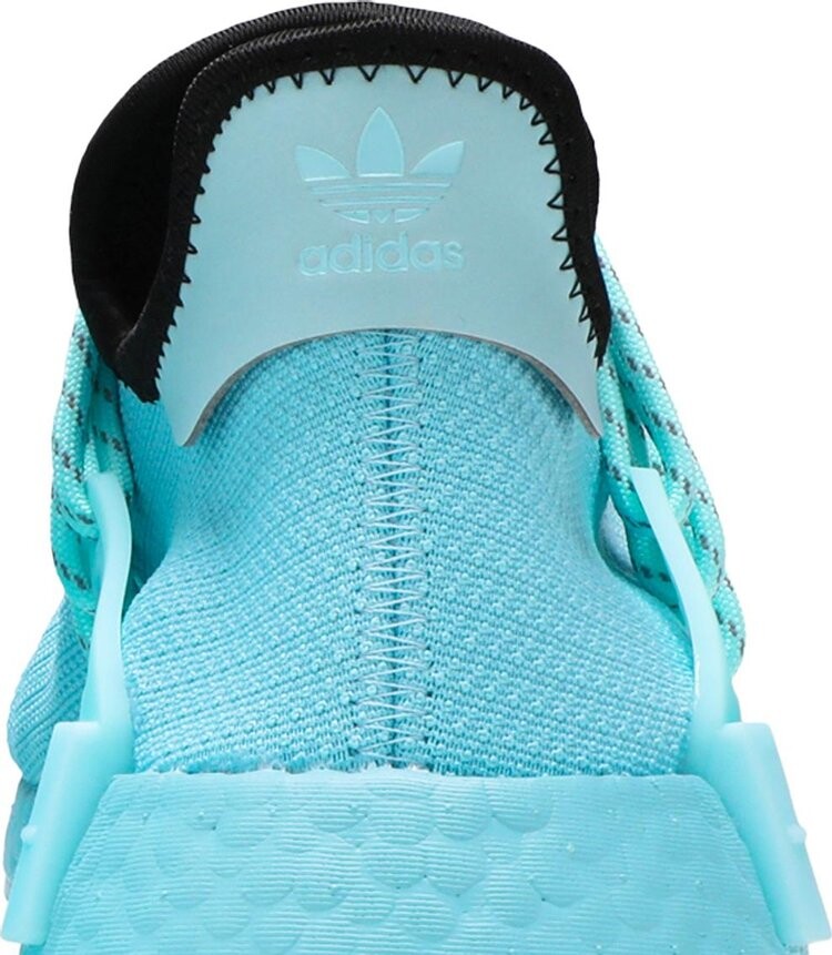 Модель Pharrell x NMD Human Race «Aqua» выпущена как часть более крупной коллекции. Верх обуви изготовлен из Primeknit, отделан цветом Aqua и поддерживается шнурками Warparound, встроенными в накладки из ТПУ. На союзке вышита надпись «Улунту», а черный цвет воротника контрастирует с внешним видом. Подошва Boost в тон обеспечивает амортизацию, а вставки в передней части стопы и пятке обеспечивают устойчивость.