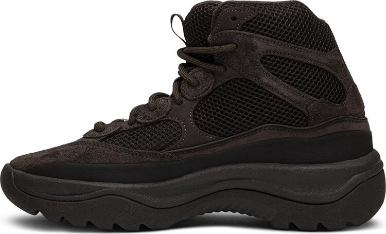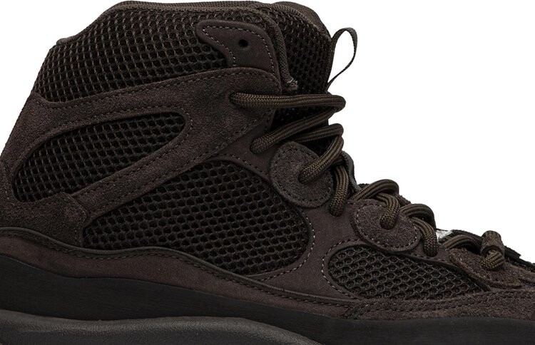 Yeezy Desert Boot 'Oil' дополняет фирменную линию Канье Уэста новой конструкцией ботинок. Замшевый носок и овальные накладки позаимствованы у Yeezy 500. Верх с разрезом на три четверти выполнен из смеси гладкой замши и сетки и окрашен в тон маслом. Толстые веревочные шнурки поддерживают посадку, как и увеличенный брызговик. Под ногами объемная межподошва из пеноматериала обеспечивает амортизацию, уступая место прочной подметке для сцепления.