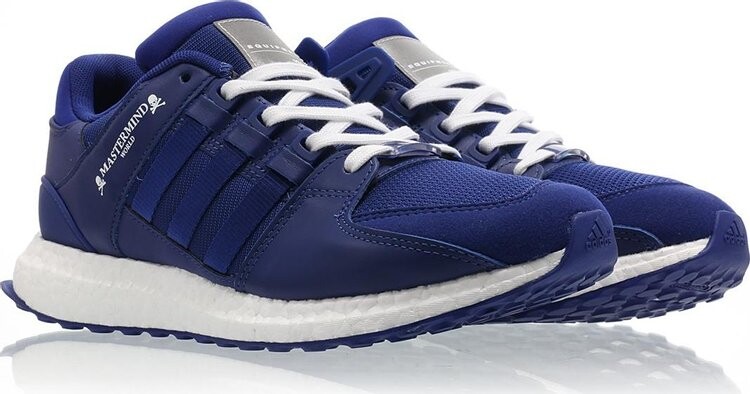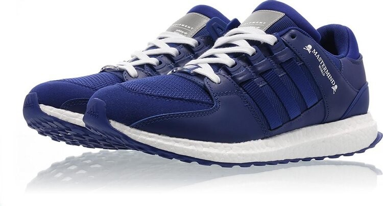 Кроссовки Mastermind x EQT Support Ultra Mystery Ink, выпущенные в сентябре 2017 года в результате более масштабного сотрудничества Adidas и Mastermind World. Верх в стиле ретро выполнен из сочетания сетки и кожи с отделкой Mystery Ink и контрастным белым. о брендинге Mastermind на боковой панели. Под ногами белая вставка Boost обеспечивает амортизацию, а на подошве нанесено больше чернил Mystery Ink.