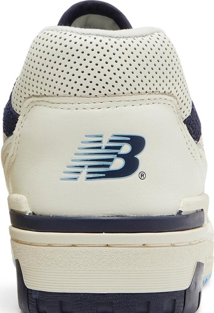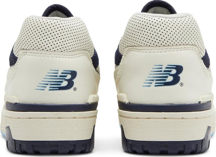Rich Paul x New Balance 550 White Navy имеют эксклюзивную цветовую гамму, созданную для известного спортивного агента. Верх из кожи белого цвета с микроперфорированной отделкой на носке, воротнике и накладке в средней части стопы. На боковой панели расположен кремовый логотип «N», обведенный темно-синим контуром, а также плетеные бирки на язычке с надписью «Rich Paul for New Balance 550». На несовпадающих стельках изображены инициалы Рича Пола на правом кроссовке и летающий логотип NB на левом. Он построен на не совсем белой межподошве с темно-синей и пудрово-синей подошвой.