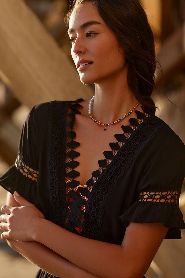 Мини-платье Peixoto с кружевным прикрытием и вышивкой, черный
