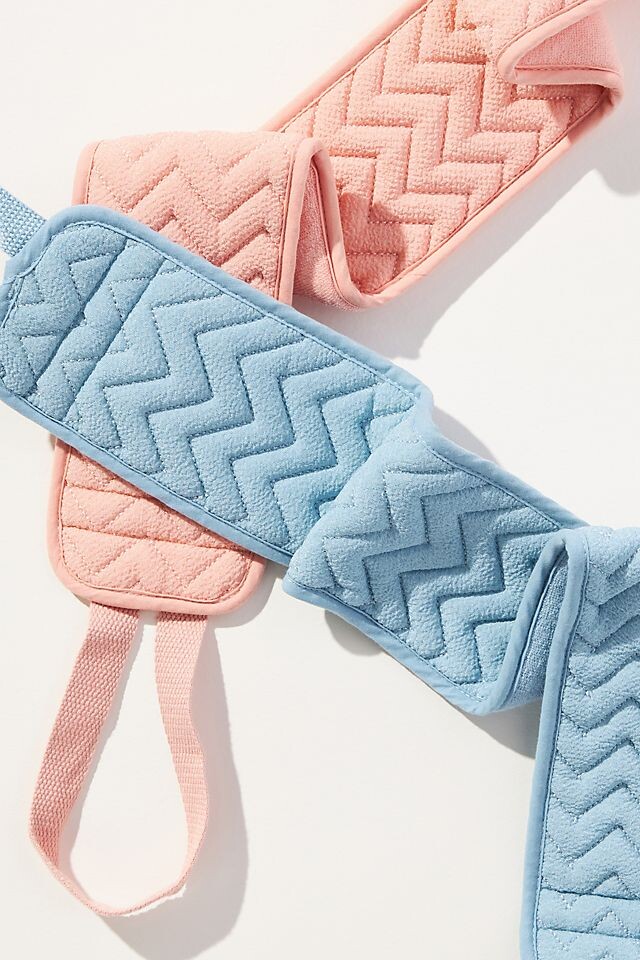 Этот двусторонний отшелушивающий пояс упрощает очистку и отшелушивание спины! Особенности включают в себя отшелушивающую сторону из вискозной ткани, мягкую сторону для полотенец и петли для рук для удобства использования.