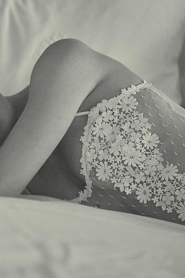 Изысканная цветочная аппликация и прозрачный тюль Swiss Dot; деликатное сочетание.