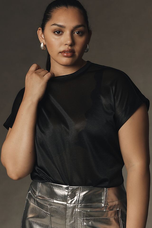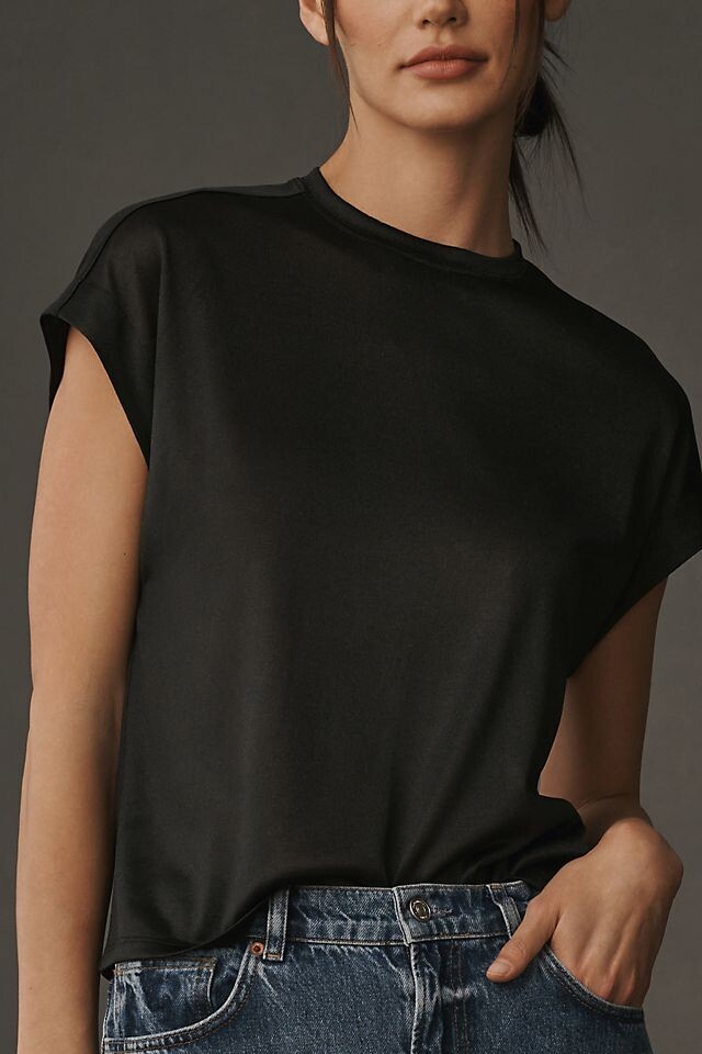 Футболка Anthropologie с шелковистым мерцанием, черный