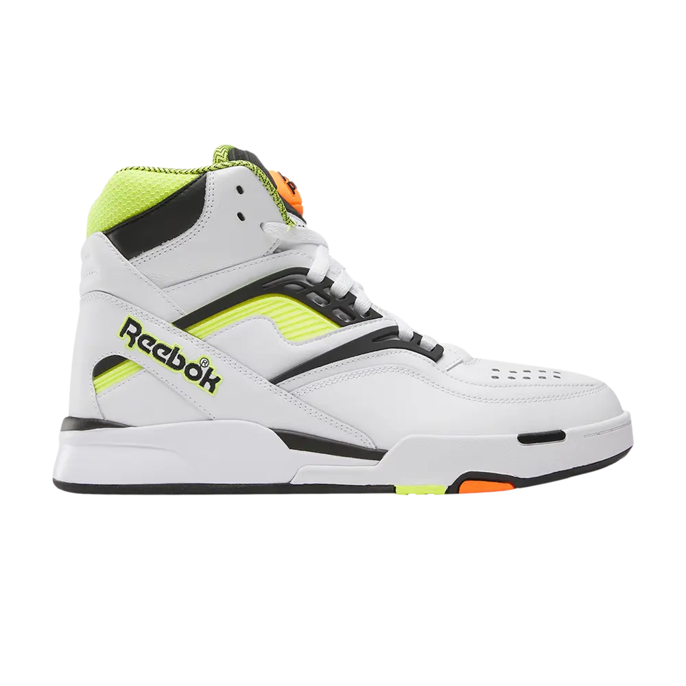 Reebok Pump TZ «Solar Yellow» имеет силуэт в стиле ретро, основанный на двух разных баскетбольных моделях из архива Reebok 90-х годов. Верх взят из фирменной цветовой гаммы Reebok Pump Twilight Zone с белой кожаной основой, черными проушинами из ТПУ и неоново-желтыми вставками. Мягкий высокий воротник в сочетании с ретро-технологией Pump обеспечивает надежную посадку. Инструменты заимствованы у Reebok Pump Omni Zone 2, подчеркнуты амортизацией Hexalite и резиновой подошвой с рисунком «елочка».