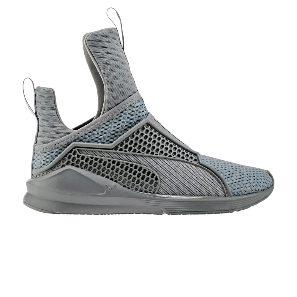 Puma и Рианна объединились в совместном бренде Trainer Quarry, который придает макияжу современную эстетику благодаря удлиненному язычку и пятке в тональном исполнении Quarry. Остальная часть конструкции обеспечивает посадку, напоминающую носок, с сетчатым текстилем для воздухопроницаемости, а система каркаса помогает увеличить боковую поддержку средней части стопы.