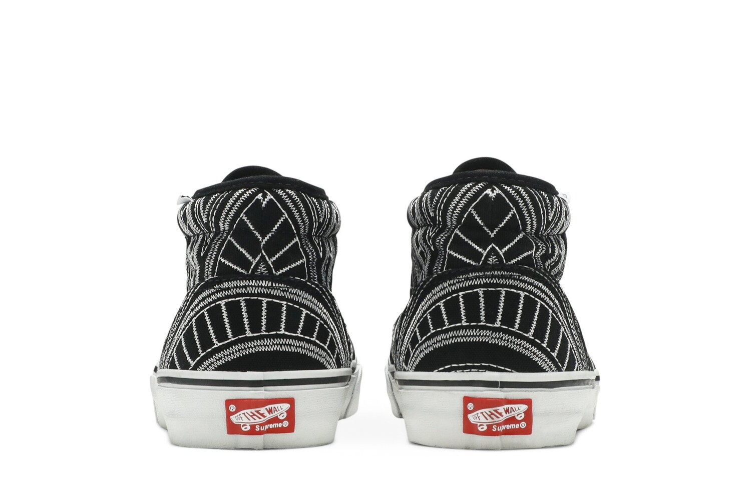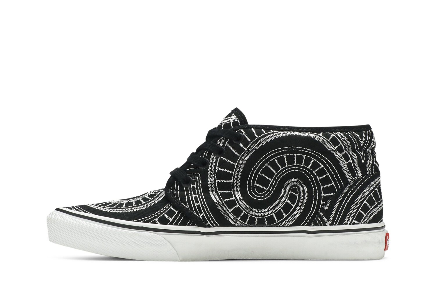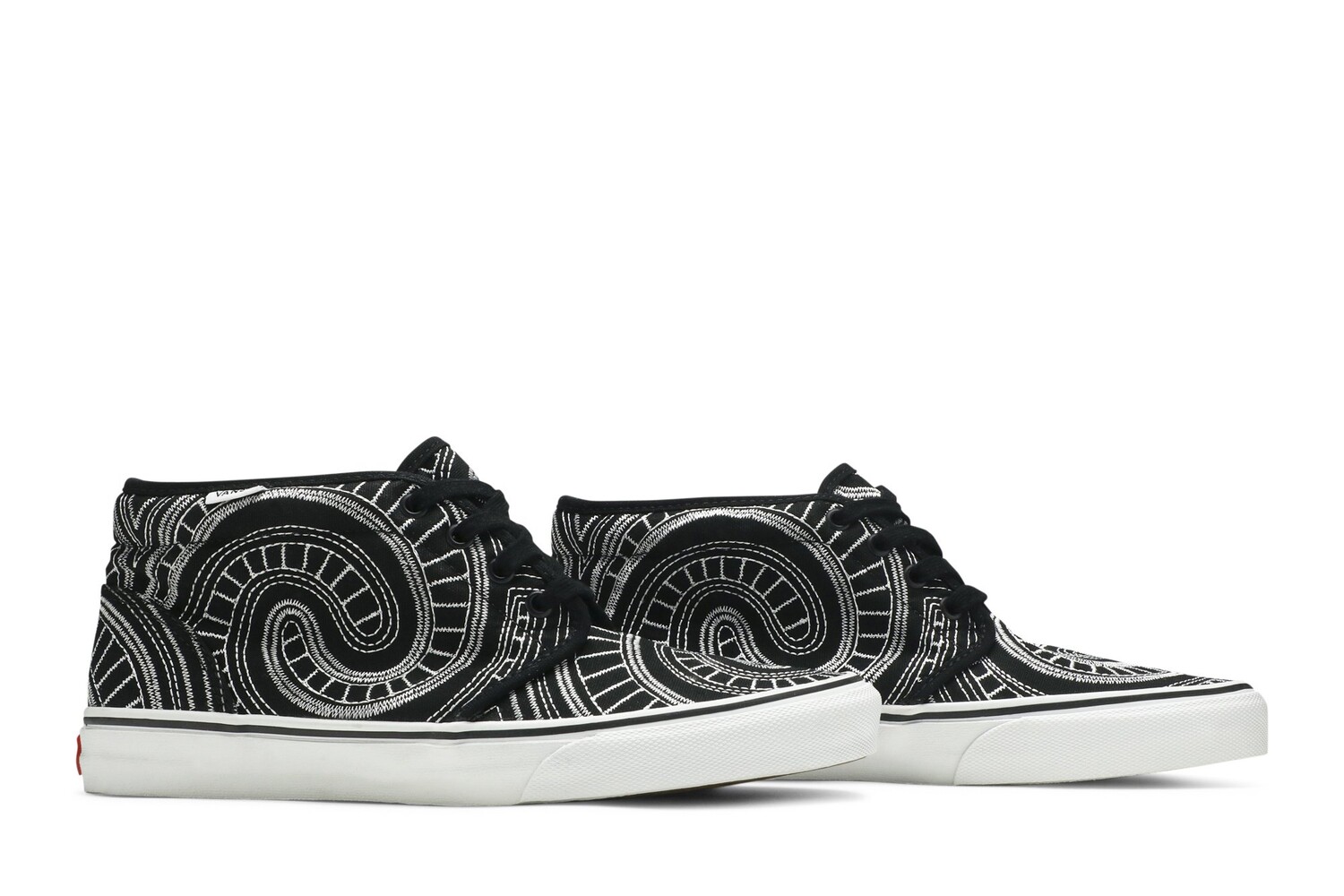 Нью-йоркский бренд уличной одежды Supreme и Vans продолжают свое давнее сотрудничество, представив эксклюзивную обновленную версию классических ботинок Chukka. Эта версия Spiral из коллекции Uptown, выпущенной в мае 2014 года, выполнена из вышитого холста. Этикетка с флагом и штамп «Off the Wall» на каблуке подтверждают аутентичность образа. Фирменная межподошва и вафельная подошва смягчают и защищают ногу от ударов.