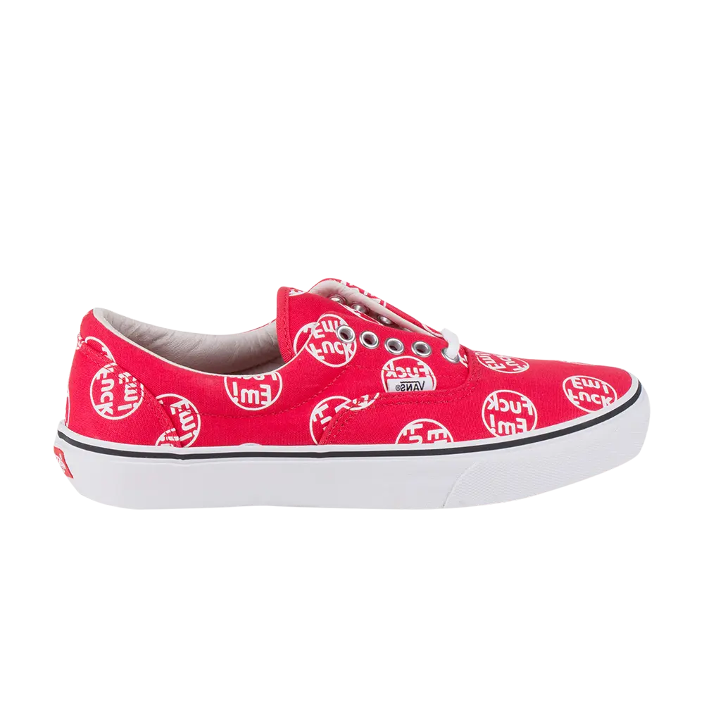 Vans объединились с Supreme, чтобы объединить эстетику двух знаковых брендов скейтбординга. Supreme x Era 'F*ck 'Em имеет яркий красный верх из парусины с мягким воротником для дополнительного комфорта и белой кожаной внутренней подкладкой. Низкий верх также может похвастаться металлическими акцентами на люверсах, классической графикой Supreme «Fuck 'Em», напечатанной на верхней части, массивной белой межподошвой с черной подкладкой и вулканизированной подошвой для сцепления.
