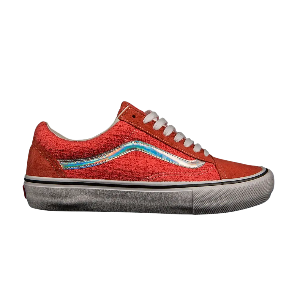 В 2004 году Supreme начал сотрудничество с Vans при создании каждой сезонной коллекции. Этот Old Skool в коралловом цвете появился в мае 2016 года как часть набора из четырех предметов весенне-летней коллекции Supreme. Модель имеет конструкцию из хлопкового букле на боковой панели и слегка набивной воротник, акцентированный переливающейся боковой полосой и дополненный замшевыми вставками в тон на проушине, носке и пятке.