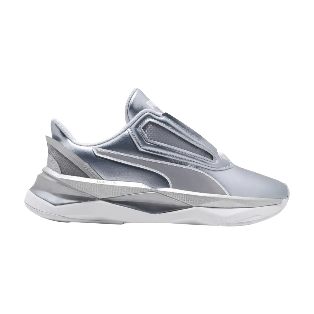 Puma Wmns LQDCELL Shatter XT Metal переосмысливает традиционные тренировочные кроссовки с перспективным дизайном, основанным на универсальных технологиях. Эта женская версия, выпущенная в сентябре 2019 года, выполнена из серебристого синтетического текстиля с сетчатыми деталями, обрамляющими скрытую шнуровку, накладками Formstrip и сетчатыми панелями на пятке. Фирменный брендинг напечатан на язычке. Подошва LQDCELL и зонированная резиновая подошва обеспечивают устойчивость и устойчивость.