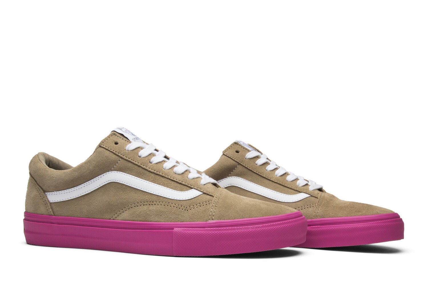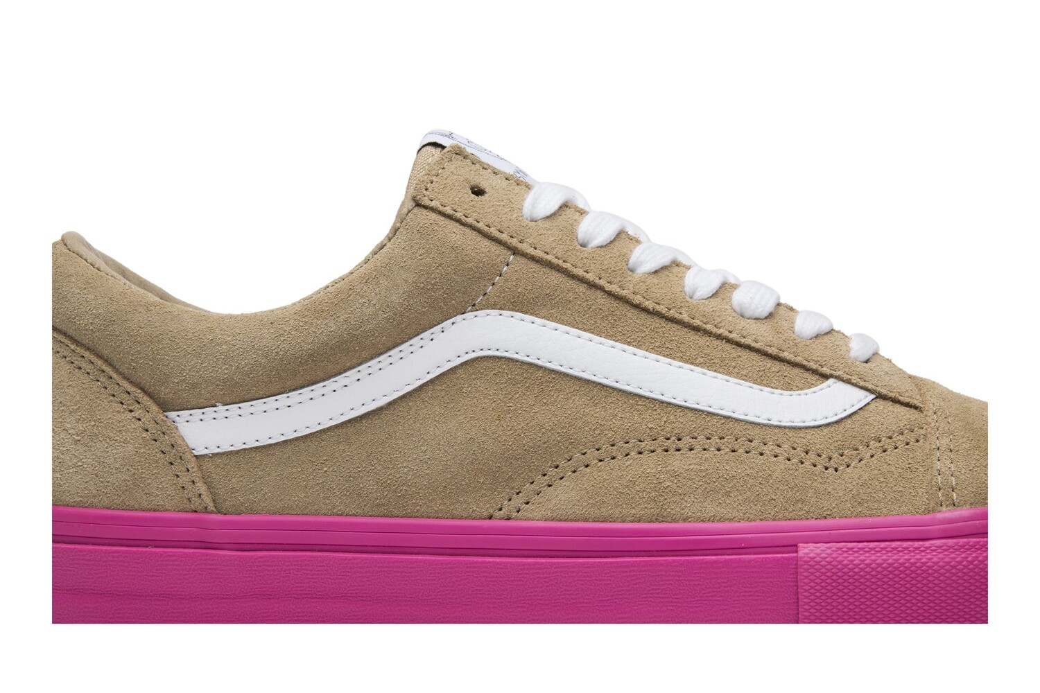 Vans Syndicate объединились с Тайлером, создателем еще одной модели Golf Wang, эксклюзивной для Old Skool Pro, в которой используется верх из коричневой замши, контрастирующий с белой кожаной полоской в стиле джаз и ярко-розовой межподошвой. Фирменный знак Golf Wang вышит граффити на пятке, а на логотипе Syndicate изображена кошка.
