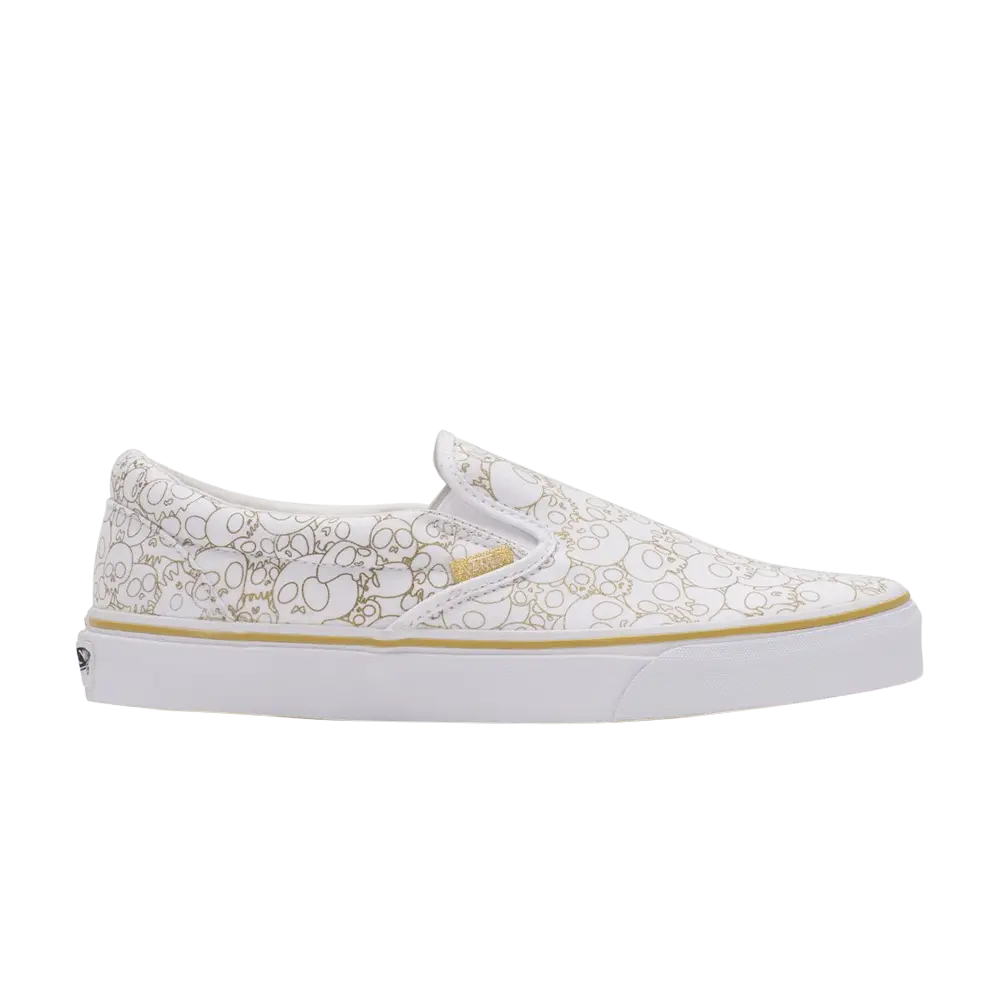 Vans объединяется с современным японским художником Такаси Мураками для создания уникальной коллекции классических слипонов Vans, перенося его яркие и характерные произведения искусства на накладки на холст. Классические слипоны — любимый силуэт Мураками в коллекции Vans, и эта версия включает в себя серию черепов с золотым контуром, напоминающих произведения Мураками в японском стиле.