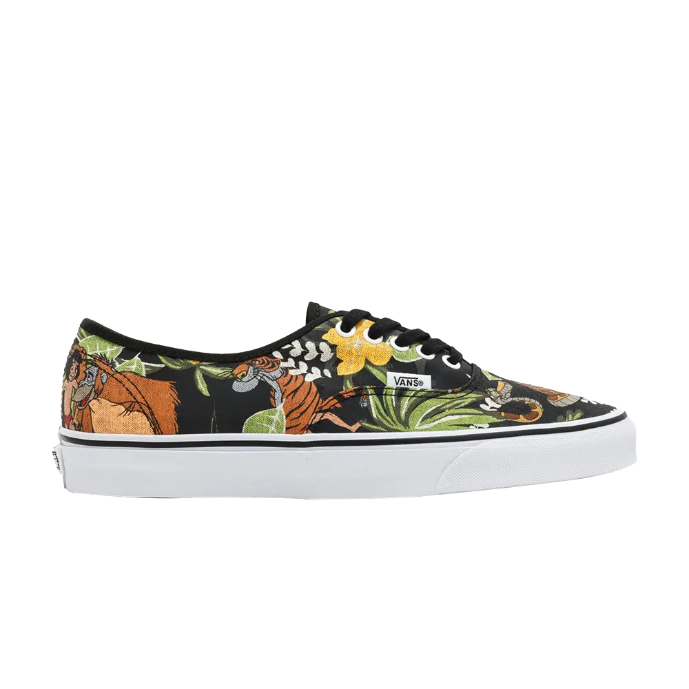 Узнаваемый силуэт Vans Authentic обретает оживленный облик с помощью повседневной обуви Disney x Authentic «The Jungle Book». На верхней части холста напечатаны многие главные герои знаменитого мультфильма Диснея, в том числе Маугли, змея Каа, тигр Шер-Хан и медведь Балу. Кроссовки с разноцветным принтом джунглей компенсируются традиционными черными шнурками и белой резиновой подошвой, обеспечивающей вафельное сцепление под ногами.