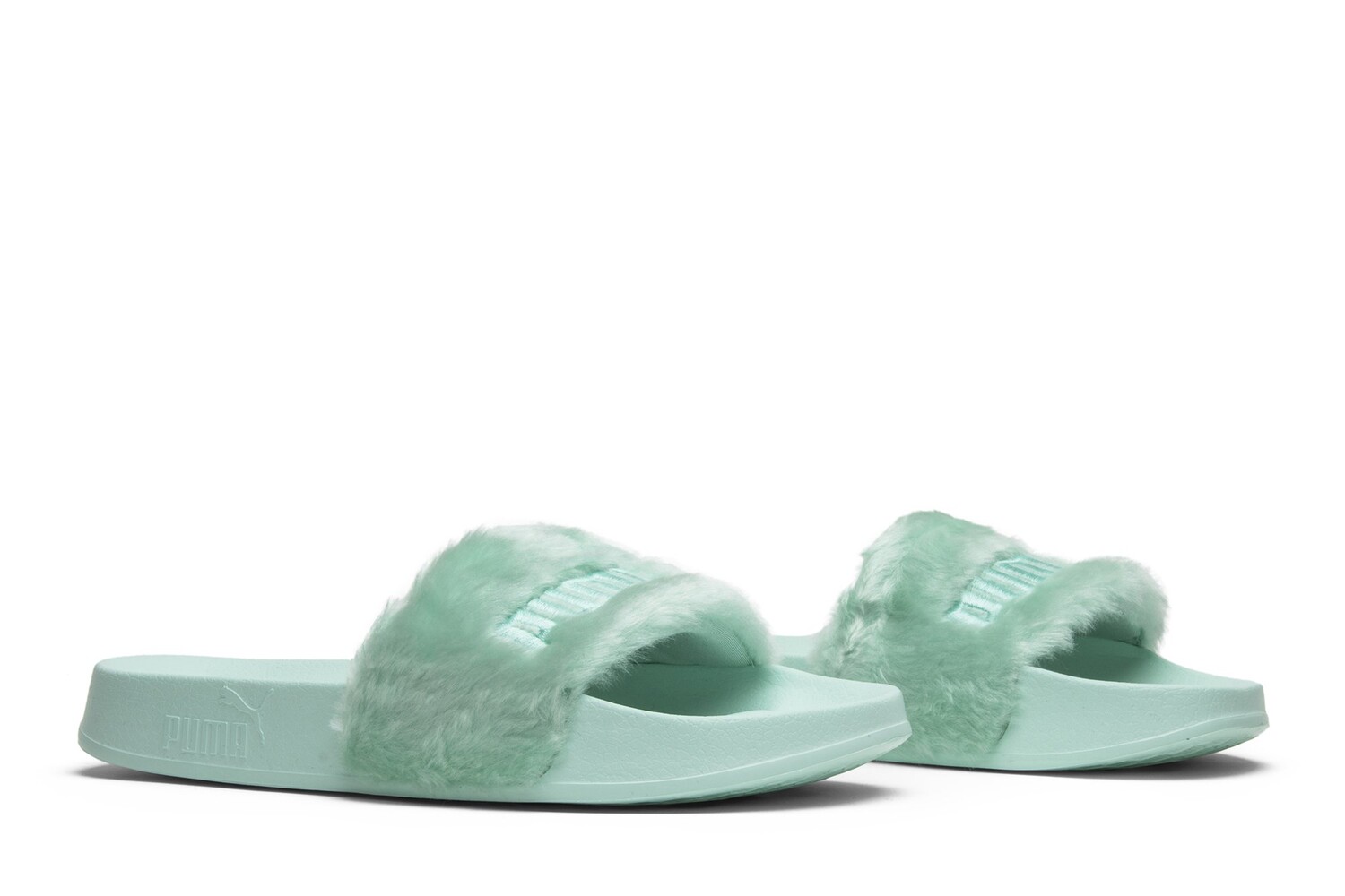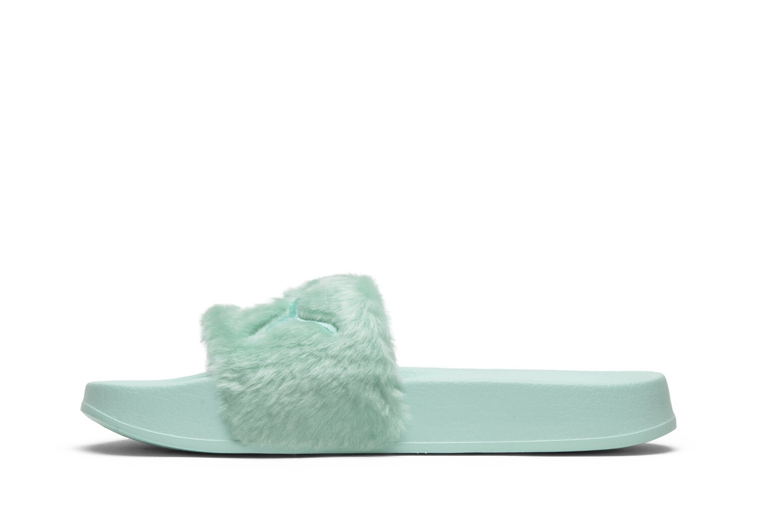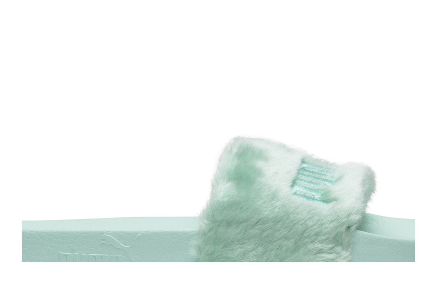 Модель Rihanna x Fenty Fur Slide 'Bay', обновленная версия функциональных сандалий Puma, оснащена широким ремешком из синтетического меха цвета Bay Green с логотипом Puma в тон и подкладкой из атласного пеноматериала. Серебристый логотип «FENTY by Rihanna» на стельке и подошва из пены EVA в тон завершают образ. Этот слайд появился в июле 2017 года вместе с цветовыми решениями «Orchid Bloom» и «Cool Blue». К каждой паре прилагается велюровая сумка для хранения с логотипом FENTY.