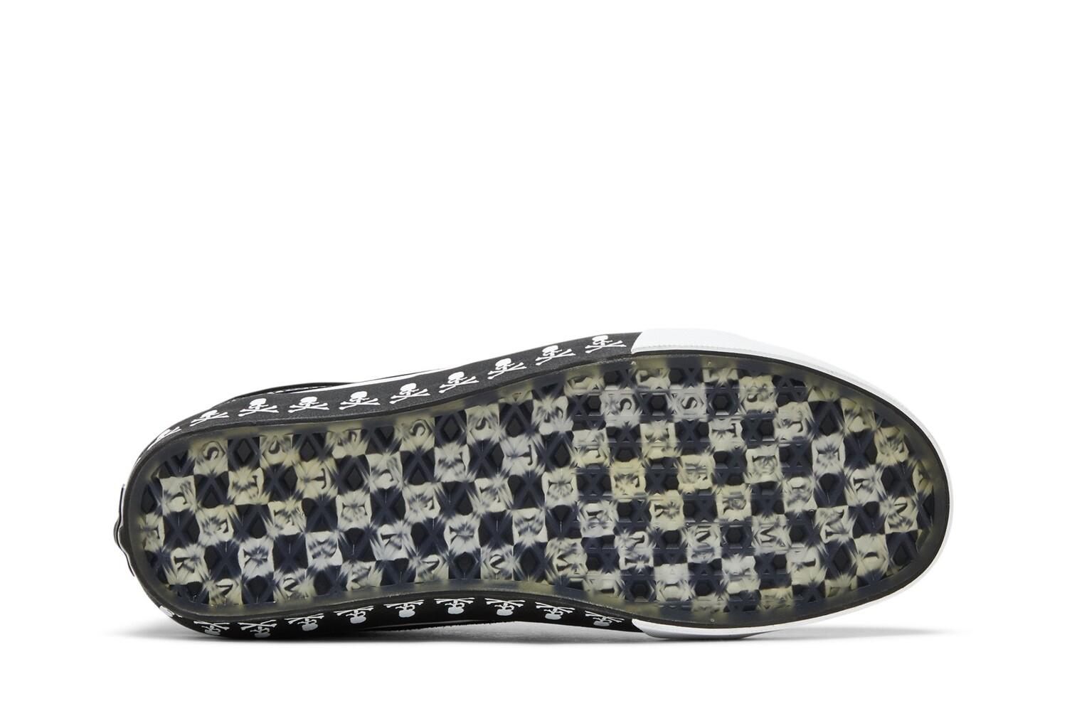 The Mastermind World x Vans Old Skool VLT LX «Punk Culture» взят из капсульной коллекции, в которой представлены изысканные материалы и базовая черно-белая палитра. Низкий верх имеет черный замшевый верх с кожаной отделкой в тон на носке и накладке на пятке. Контрастная белая строчка подчеркивает классические линии обуви, а пятку украшает мотив черепа и скрещенных костей Mastermind World. Графика повторяется на черной межподошве, усиленной текстурированным бампером на носке с контрастной белой отделкой. Под ногами полупрозрачная вафельная подошва с необычным шахматным принтом.