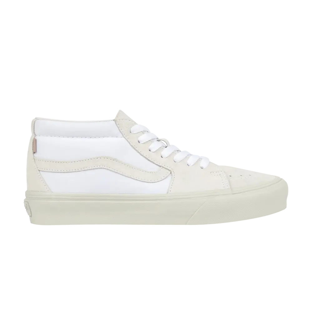 Выпущенная в составе совместного комплекта из трех предметов, модель JJJJound x Vans Sk8-Mid VLT LX «Hospitality» отдает дань уважения работникам сферы услуг своим минималистским, готовым к униформе дизайном. Модель среднего размера, впервые выпущенная в 90-х годах под названием Vans Style #83, имеет белый верх из парусины и не совсем белые боковые панели в передней части стопы и пятке. Детали включают замшевую боковую полосу, внутреннюю отделку из кожи и неброскую бежевую бирку JJJJound на задней части правой обуви. В основе кроссовок лежит межподошва из вулканизированной резины цвета слоновой кости, усиленная текстурированным бампером на носке и украшенная номерным знаком Vans в тон. Вафельная подошва обеспечивает сцепление с поверхностью стопы.