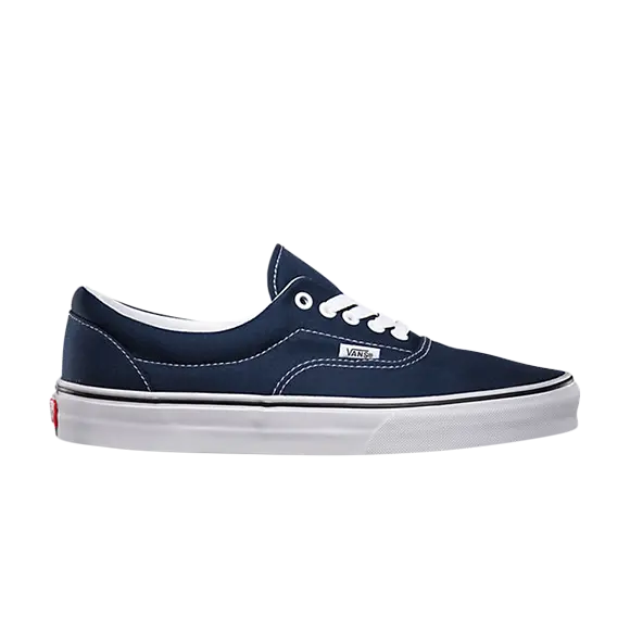Vans Era с низким силуэтом и изящным профилем является символом повседневной жизни. Эта итерация включает в себя прочный верх из парусины темно-синего цвета с контрастной строчкой сверху и фирменный красный логотип на бампере «Off the Wall» на пятке. Мягкий воротник и традиционная система шнуровки усиливают обувь, а классическая межподошва из вулканизированной резины с вафельной подошвой дополняет дизайн.