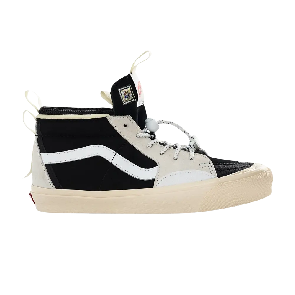 Консультативный совет Crystals x Vans Sk8-Hi EXT «Black White» объединяет бренды-партнеры в дизайне из смешанных материалов, подчеркнутом асимметричными цветовыми блоками в нейтральных белых, кремовых и черных тонах. Верх, закрепленный шнуровкой, выполнен из комбинации замши, кожи, текстиля и сетки. Укороченный воротник открывает открытую подкладку из пеноматериала, а внутренний рукав из сетки обеспечивает плотную посадку. К пятке и язычку добавлены язычки для ремня, последний отмечен двойными Vans и Abc. брендинг. Подошва с вафельным протектором из резины обеспечивает сцепление.