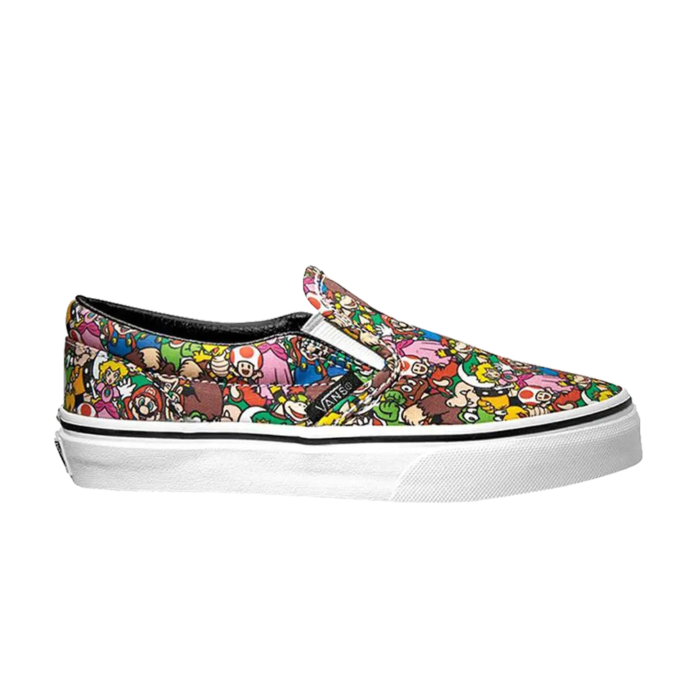 Эти совместные слипоны были выпущены в июне 2016 года как часть более крупной коллекции обуви и одежды от Vans и Nintendo. Верх обуви из парусины украшен красочной графикой по всей поверхности, изображающей персонажей из Super Mario Bros., в том числе Марио, Луиджи, Тоада, принцессу Пич и Йоши. Под ногами черная вафельная подошва украшена обескураживающей надписью «ИГРА окончена!». сообщение, написанное белыми печатными буквами, половина фразы написана на каждой обуви.