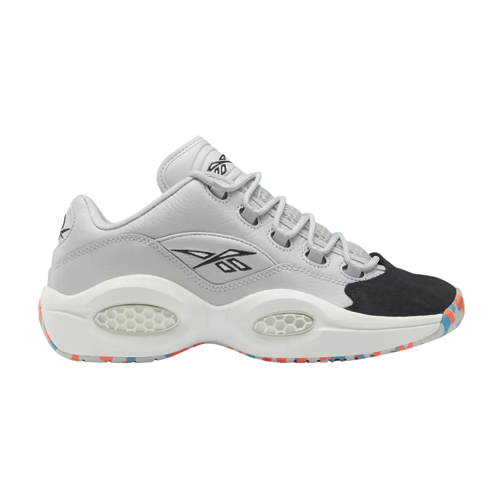 Reebok Question Low «Rec Center» представляет собой обновленную версию дебютной фирменной обуви Аллена Айверсона. Верх выполнен из бледно-серой кожи с дышащим сетчатым язычком и усиленным носком из черной замши. Логотип Reebok Vector нанесен на язычок и боковую панель, а логотип «Вопрос» вышит на пятке. Кроссовки установлены на скульптурной межподошве из ЭВА с видимой амортизацией Hexalite. Резиновая подошва под ногами имеет многоцветную отделку, призванную передать ностальгическую атмосферу местного центра отдыха.