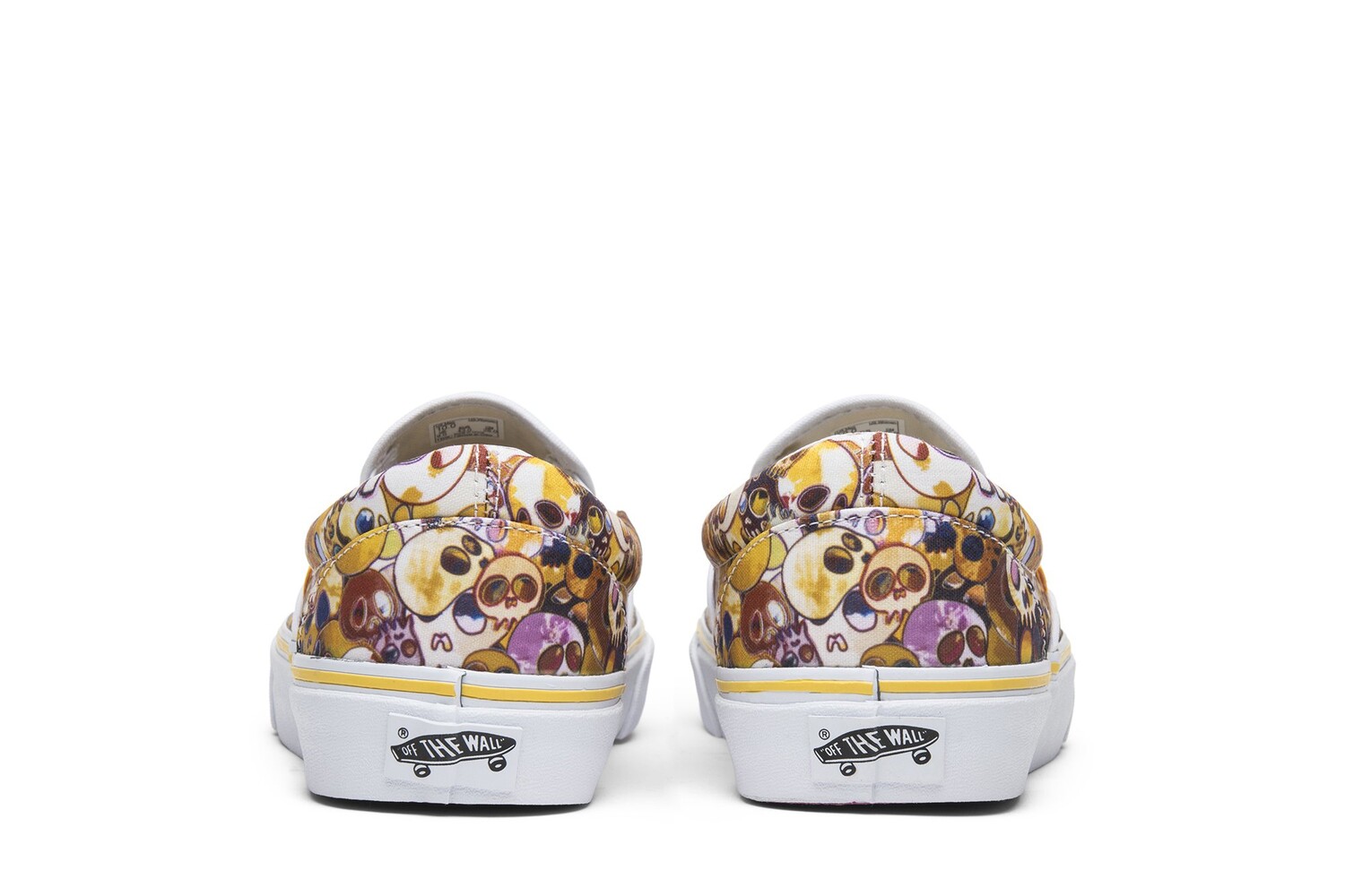 Как художник смешанной техники, работающий с яркими, яркими формами и цветами, работы Такаси Мураками, как известно, сосредоточены вокруг аниме и японской поп-культуры. Слипоны Takashi Murakami LX «Yellow Skull» прославляют творчество Мураками. Низкий верх имеет холщовый верх, покрытый принтами черепов, напоминающими мотивы других его работ, а также классический дизайн Vans Slip-On и вулканизированную подошву. Кроссовки были выпущены вместе с тремя футболками аналогичной тематики.