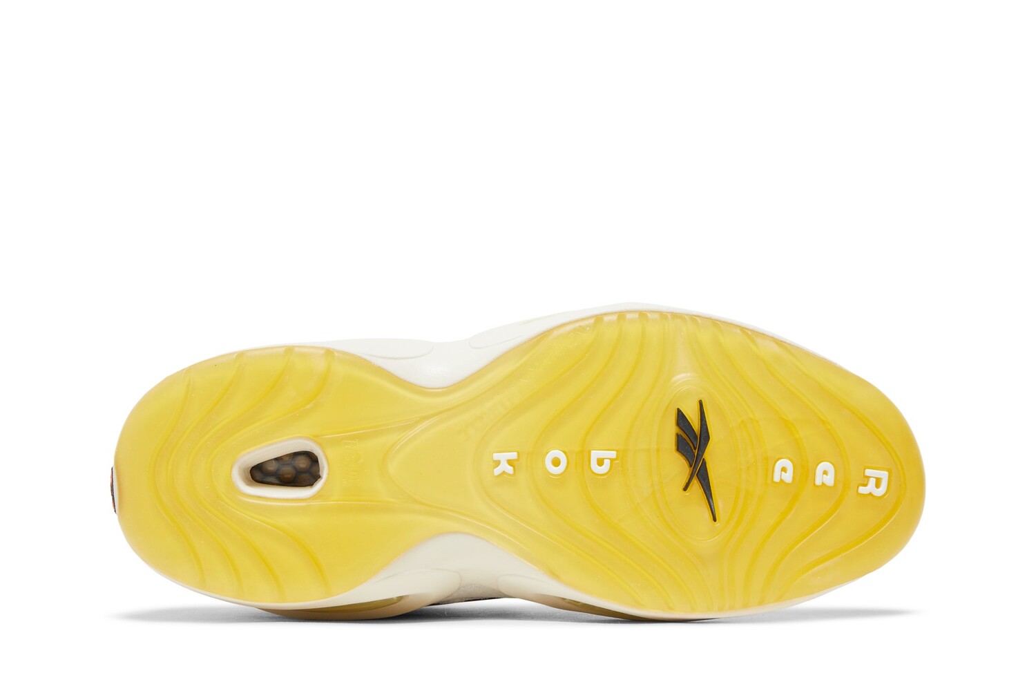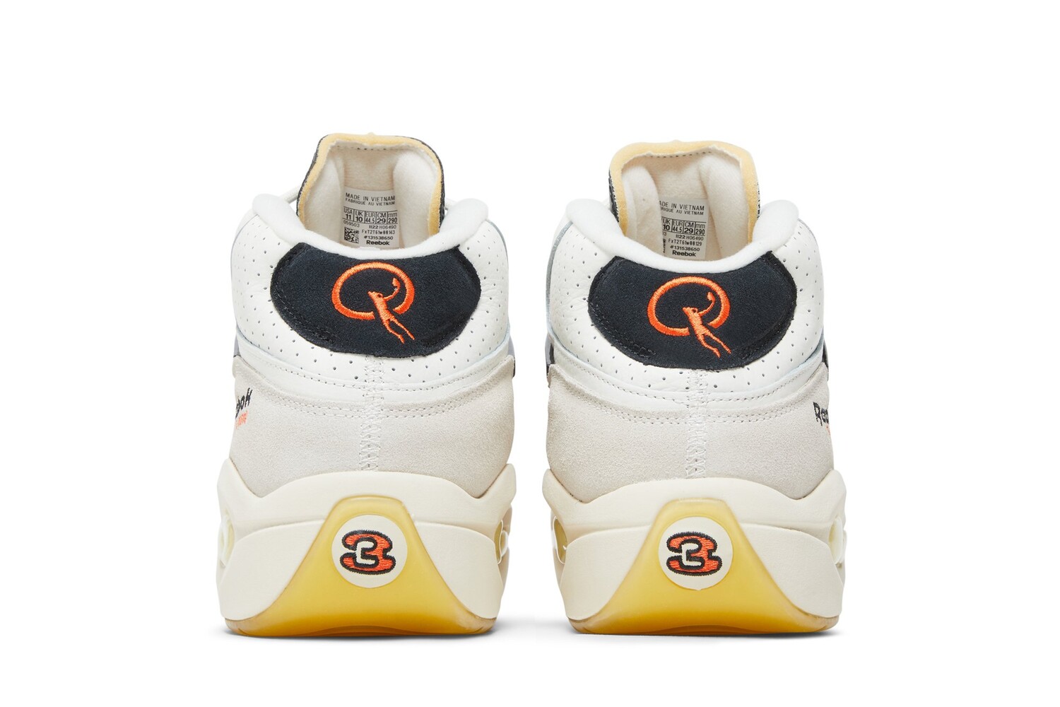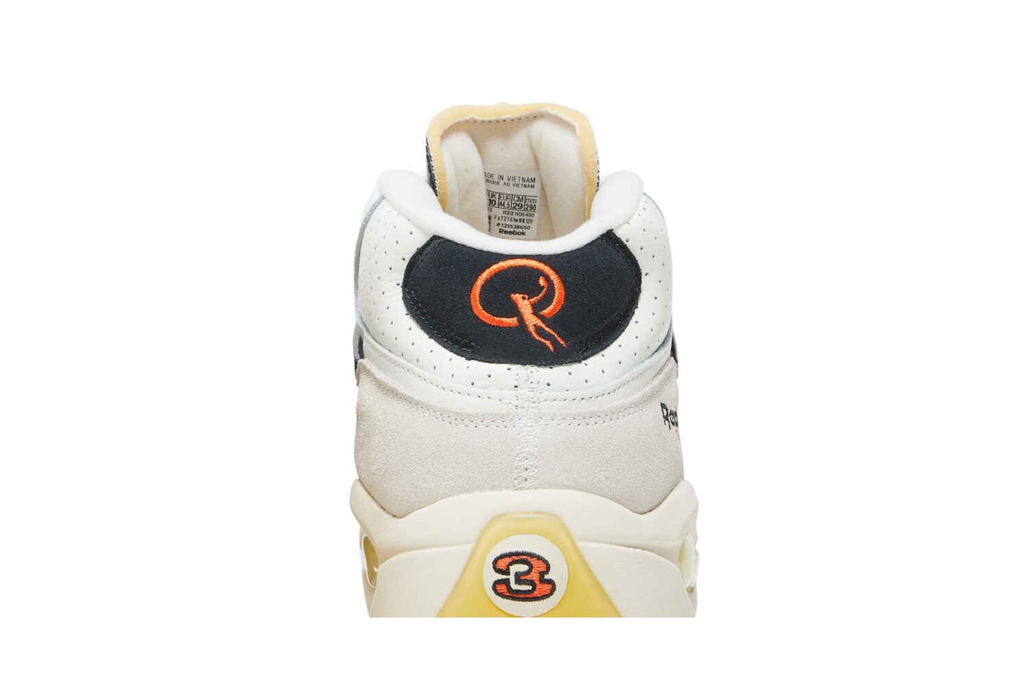 Кроссовки Reebok Question Pump «Pump Universe» представляют собой гибридный силуэт, в котором сочетаются элементы дебютной фирменной обуви Аллена Айверсона и Pump Omni Zone 2. Верх выполнен из белой кожи с воздушными сетчатыми боковыми панелями, клеткой из ТПУ черного и оранжевого цвета и замшевый брызговик бледно-серого цвета. Знаменитая кнопка Reebok Pump находится поверх открытого пенопластового язычка, а на пятке изображен модифицированный логотип вопроса, включающий силуэт Ди Брауна, выполняющего свой печально известный данк без взгляда в 1991 году. Отличительные особенности межподошвы взяты из модели Reebok Вопрос. видимая амортизация Hexalite внутри и полупрозрачная резиновая подошва под ногами.