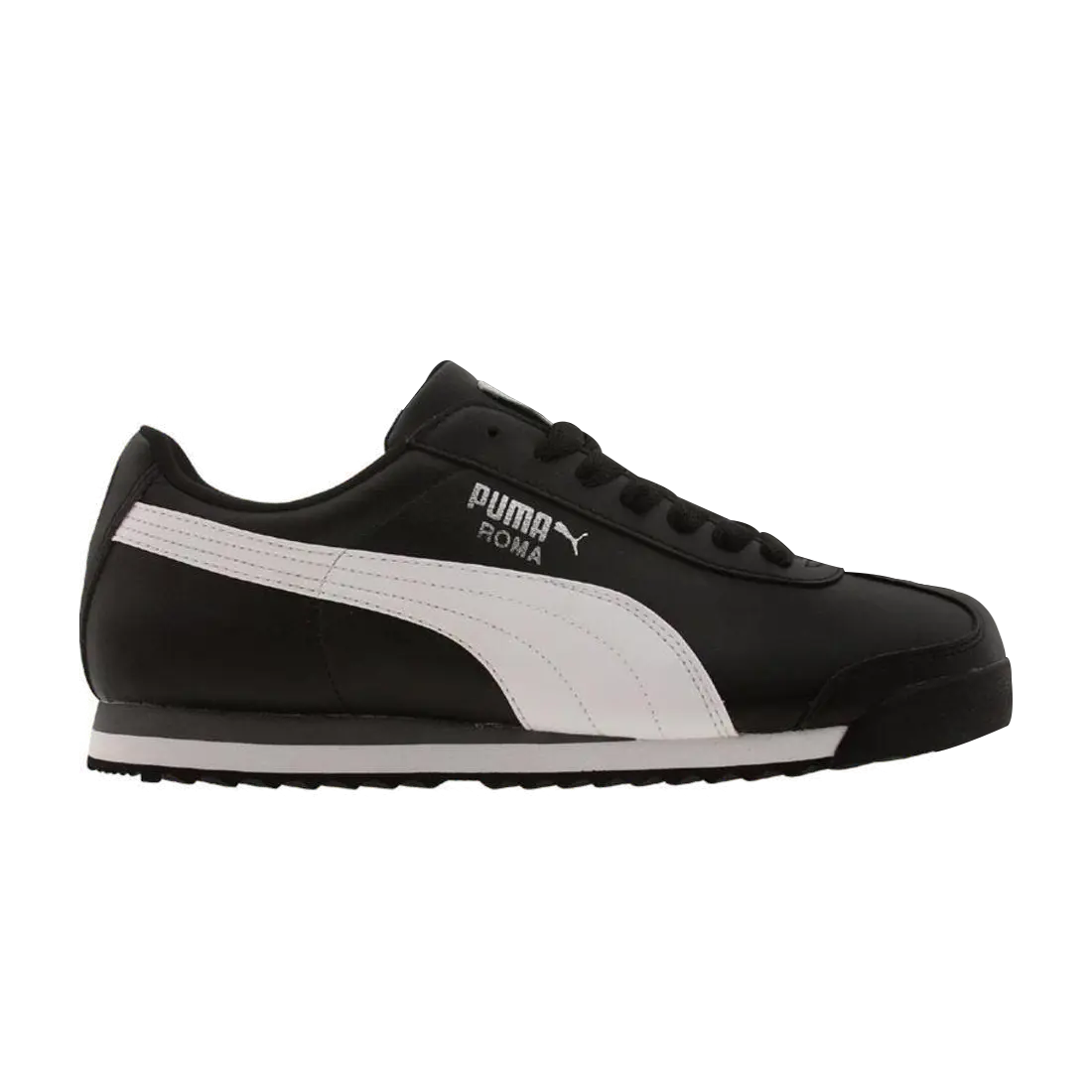 Первоначально Roma была выпущена в 1968 году как кроссовки для бега. Puma вернула на прилавки популярный силуэт под названием Roma Basic. Верх этой версии выполнен из синтетической кожи и украшен контрастными полосками Formstrips. Яркая черно-бело-серая цветовая гамма создает явно ретро-ощущение. Пена из этиленвинилацетата обеспечивает амортизацию внизу, а резиновая подошва с мягкими шипами обеспечивает сцепление.