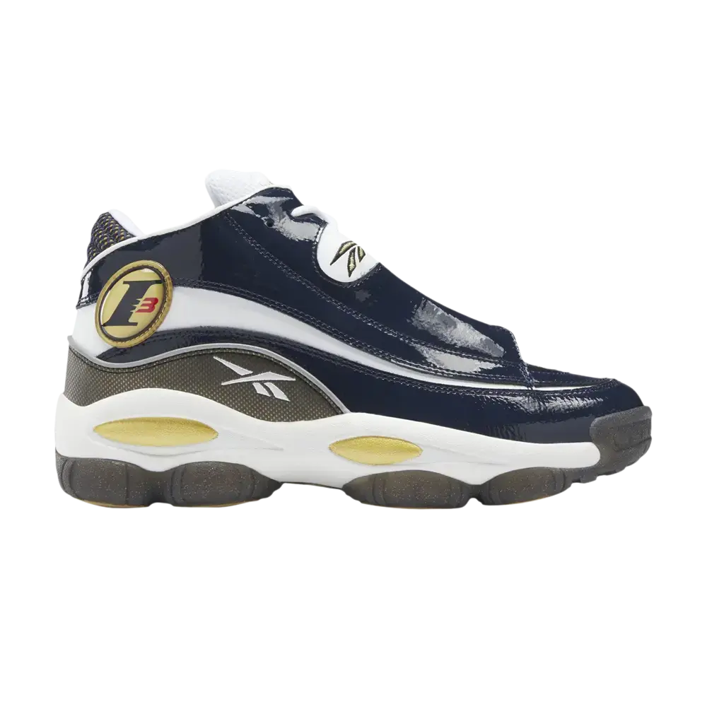 Выпущенные в составе пакета NCAA, кроссовки Reebok Answer DMX «Georgetown» демонстрируют цветовую схему, вдохновленную альма-матер Аллена Айверсона. В ретро-силуэте использован верх из лакированной кожи с открытым лицом цвета Collegiate Navy, контрастирующий с деталями из белой кожи и украшенным драгоценными камнями логотипом I3 из металлического золота. Средняя часть стопы опирается на межподошву из этиленвинилацетата с амортизацией DMX от Reebok, использующей технологию движущегося воздуха, которая перемещается от передней части стопы к пятке при каждом шаге.