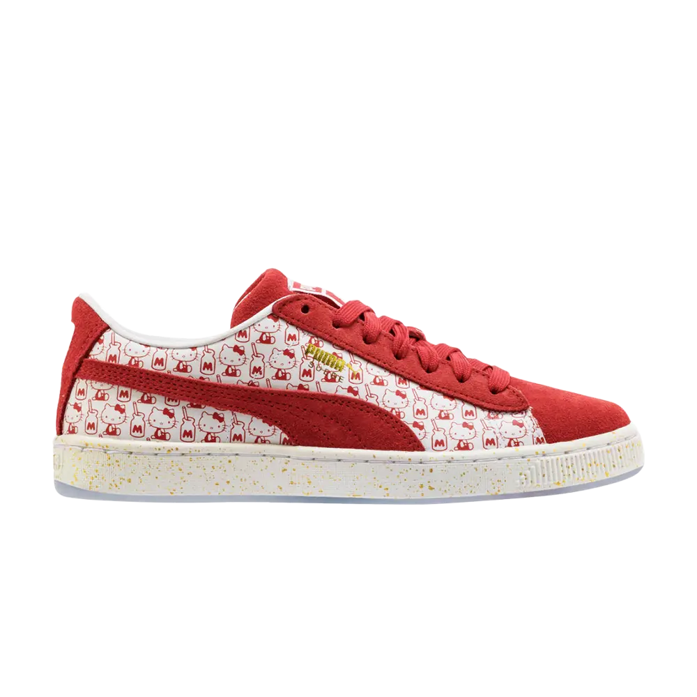 Выпущенные в рамках капсульной коллекции Hello Kitty x Puma в феврале 2018 года, кроссовки Hello Kitty x Puma Suede Classic GS «Bright Red» сочетают в себе спортивный классический вид дизайна с низким верхом и графику Hello Kitty в этой детской версии кроссовок. дизайн. Верх кроссовок выполнен из красной замши и белой кожи, с принтом Hello Kitty по бокам, а также замшевыми накладками на язычке, союзке, пятке и носке, а также логотипом Puma x Hello Kitty, украшающим язычок и пятку.