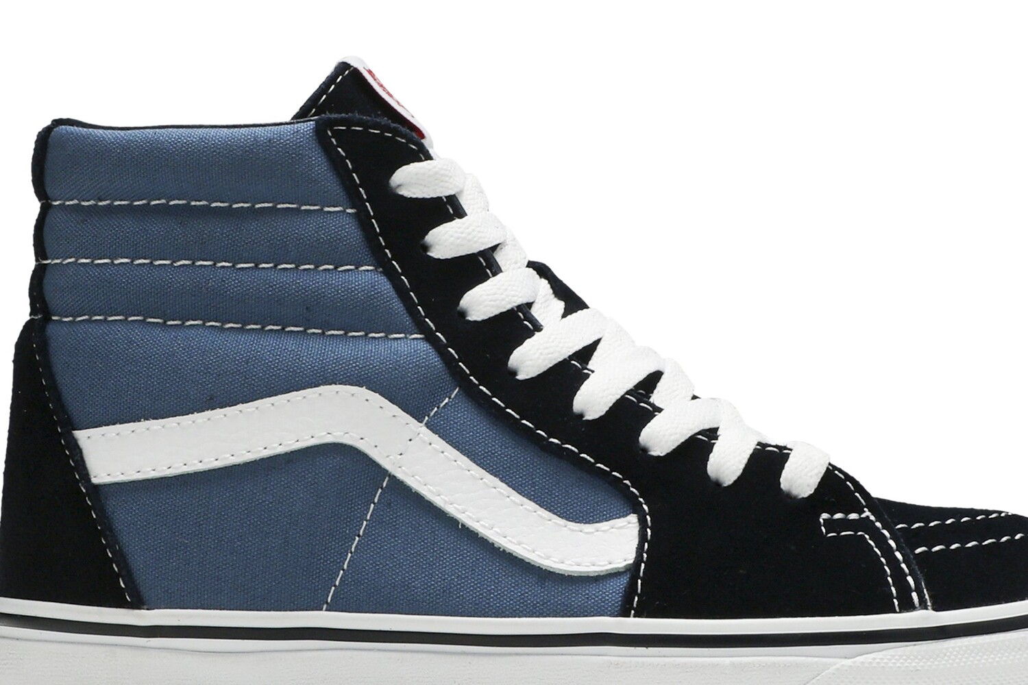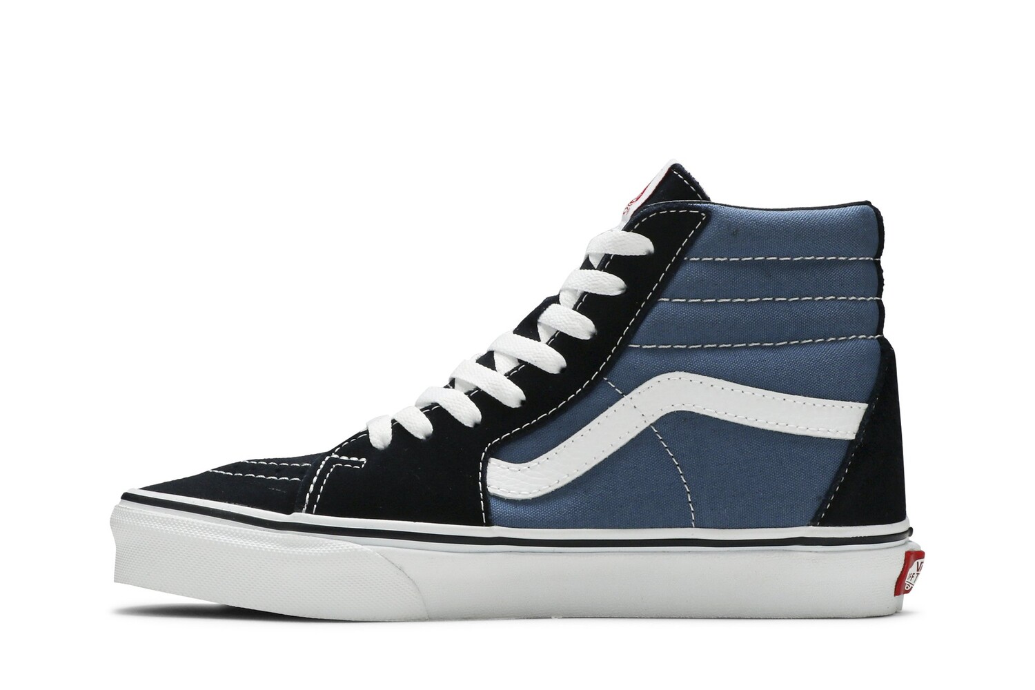 Модель Sk8-Hi, представленная в популярной комбинации черного и темно-синего цветов, имеет прочный парусиновый верх и замшевый верх в знакомых цветовых блоках. Белая джазовая полоса пронизывает дизайн, а вулканизированная подошва украшена фирменным вафельным рисунком Vans. В комплект входит мягкий воротник для дополнительной амортизации.