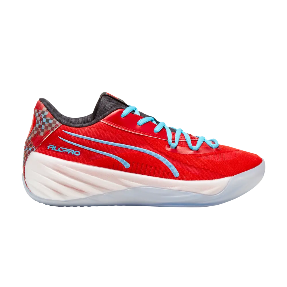 Scoot Henderson x PUMA All-Pro Nitro «ODD Mindset» представляет собой смелую цветовую гамму из полиэтилена, характерную для спортивных обручей. Яркая алая отделка украшает верх из текстиля и синтетической кожи, подчеркнутый полоской PUMA Formstrip, очерченной бирюзовым цветом. Номер на футболке Скута Хендерсона указан на плетеной бирке на язычке, а его личная мантра — «Чрезмерная решимость доминировать» — написана на специальной стельке. Минималистский дизайн дополнен объемной межподошвой с добавлением NITRO, поддерживаемой нескользящей полупрозрачной резиновой подошвой.