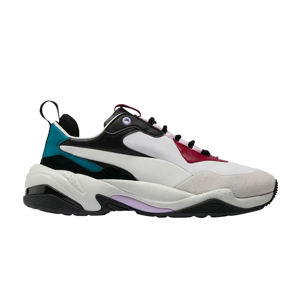 Ливанский дизайнер Лама Джуни училась у некоторых из самых престижных модных домов в Париже, а затем в 2016 году запустила свой бренд готовой одежды. Женские кроссовки Thunder Rive Droite «Glacier Grey» — одна из двух ее обработок известных массивных кроссовок Puma. Силуэт, вдохновленный облаками и освещением, дополнен накладками из кожи, замши и нубука, приглушенные серые и коричневые оттенки сменяются яркими вкраплениями цветов. Ниже увеличенная межподошва поверх резиновой подошвы.