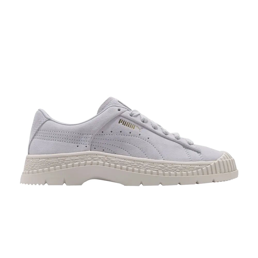Промышленный дизайн сочетается со стилем повседневной уличной одежды в кроссовках Puma Wmns Utility Suede «Heather» июля 2019 года. Верх выполнен из мягкой замши и прошит в тон вдоль средней части стопы, создавая фирменную эстетику бренда. Перфорация на боковой стенке обеспечивает циркуляцию воздуха по всей стопе, а система шнуровки обеспечивает надежную посадку. Подчеркивая особый женский силуэт, текстурированная резиновая межподошва и подошва обеспечивают достаточную амортизацию для прогулок по городу.