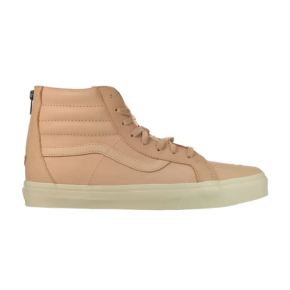 Версия культовых высоких кроссовок Vans «Veggie Tan» появилась вместе с рядом других интересных вариаций Sk8-Hi в цвете и материале, выпущенных в год 50-летия бренда. Эта модель дополнена высококачественной кожей растительного дубления в тон и застежкой-молнией на пятке.